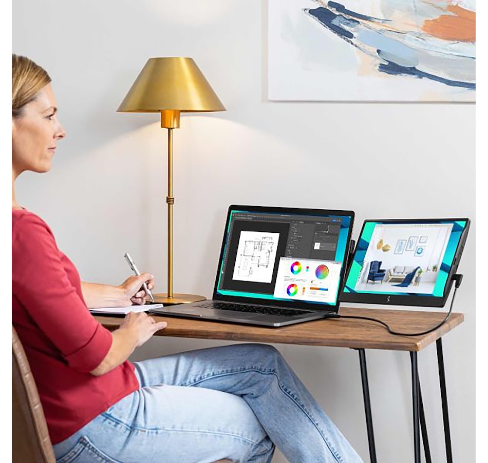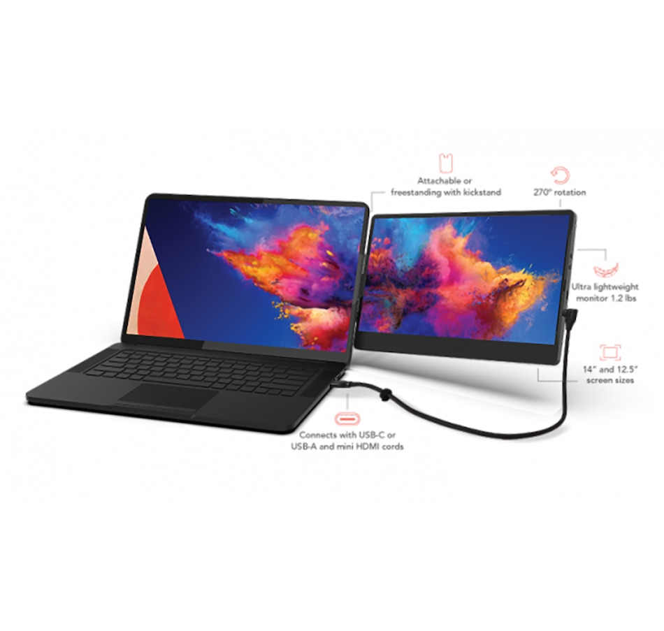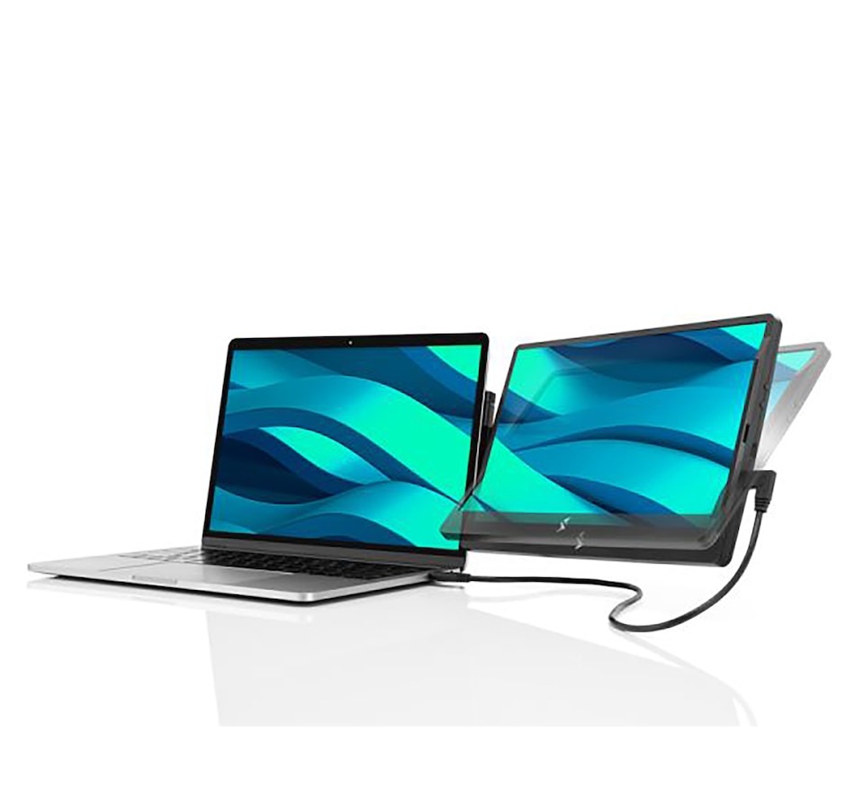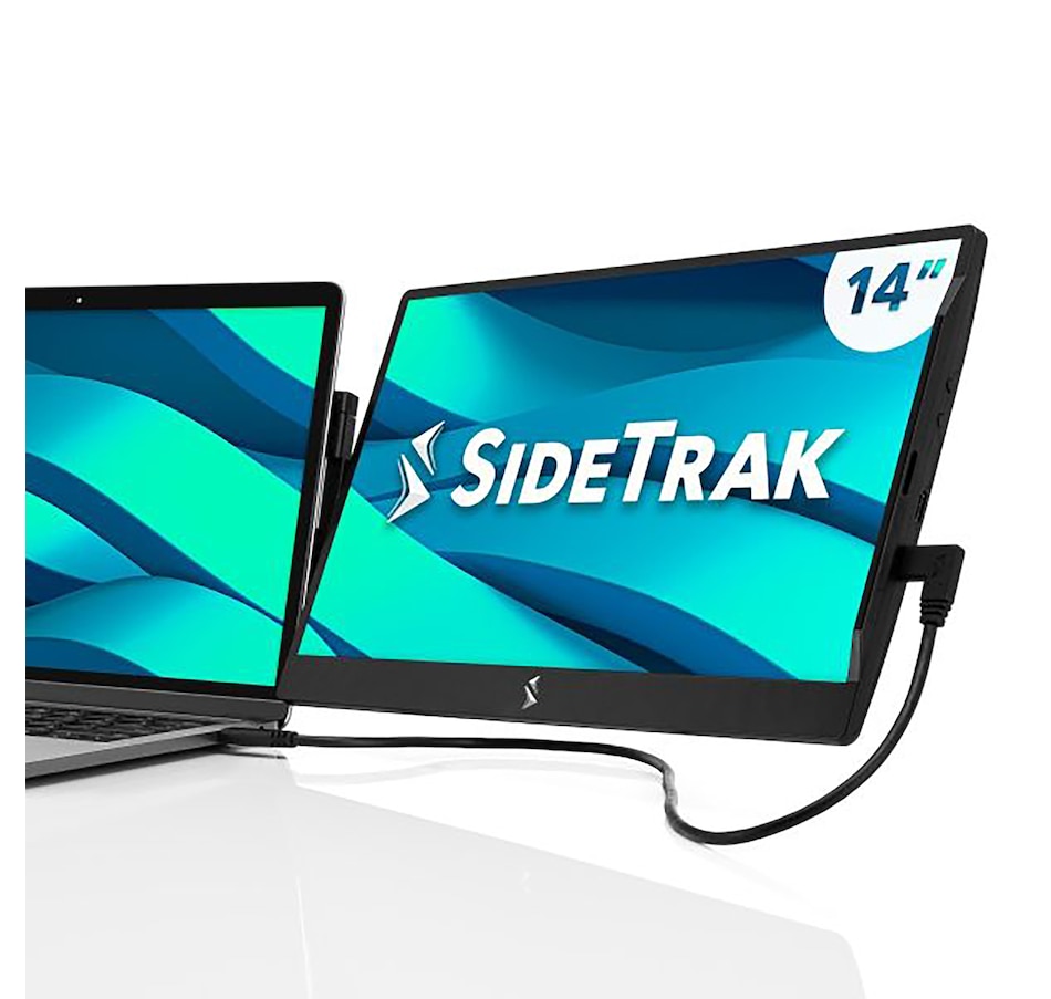 Experience unparalleled versatility and convenience with this portable 14" laptop monitor from SideTrak, designed to enhance your productivity wherever you are. It can swivel 360 degrees for effortless switching between portrait and landscape modes for the perfect viewing angle for your work or entertainment needs, and its anti-glare screen provides crisp, clear visuals, whether you're working on spreadsheets, editing photos or streaming videos. Its slim design and lightweight construction makes it perfect for professionals, students and gamers who need a versatile secondary display, plus you can easily attach it to the back of your laptop using the included kickstand for a seamless dual-screen set-up that enhances your workflow.
