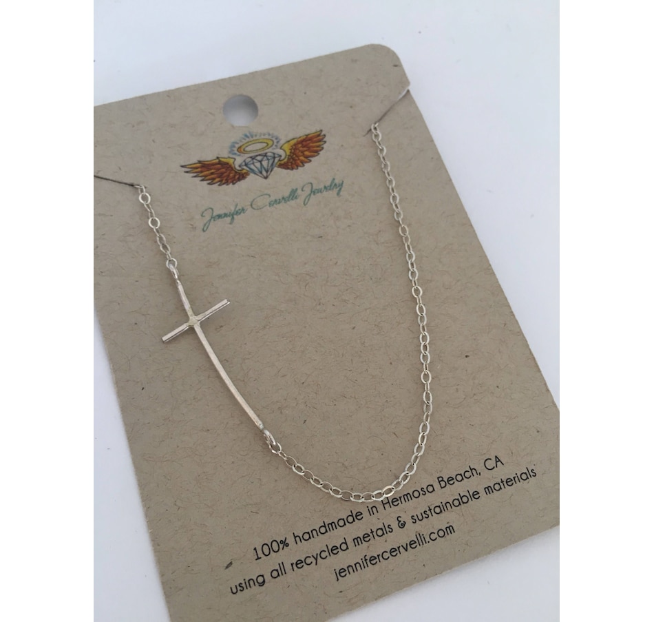 This unique sideways cross necklace is a part of The Emergi Collection: Emergi - to rise up, emerge, free ones self. Adornment for those extra special moments in life, designed to celebrate life, love, and joy. Chain is an adjustable 16-18" in length. 100% handmade in Hermosa Beach, California USA using recycled metals and sustainable materials. These are made to order, so please allow up to 1 week production before shipping. Thank you!