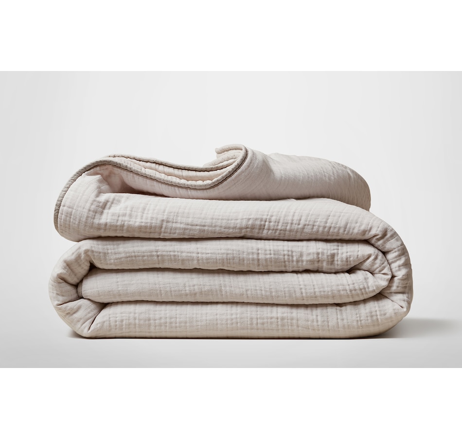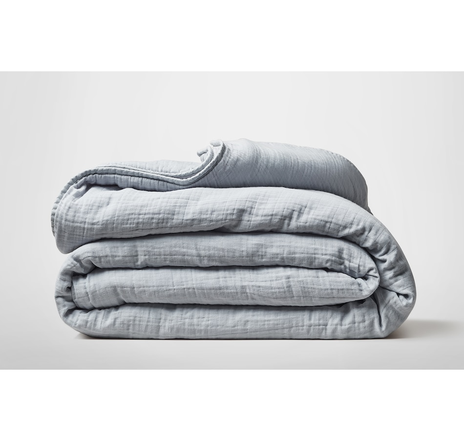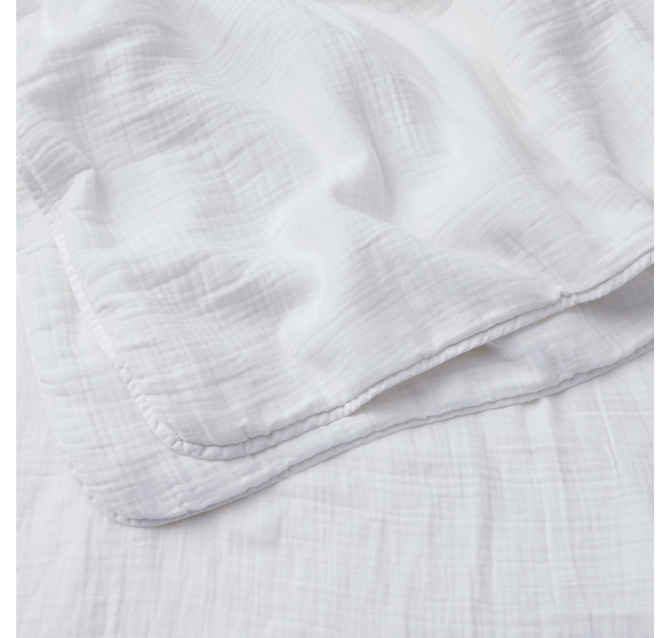 This soft muslin bedding is made in Portugal, and features the quality craftsmanship that country has become renowned for. It is perfect for those looking for lightweight bedding that is still warm and breathable; the perfect replacement for a comforter or duvet. No longer worry about sleeping "too hot" as this 100% cotton Muslin is cool and breathable, naturally.