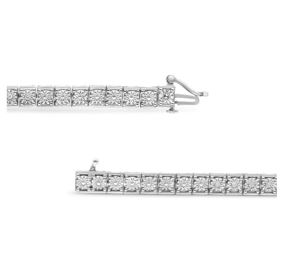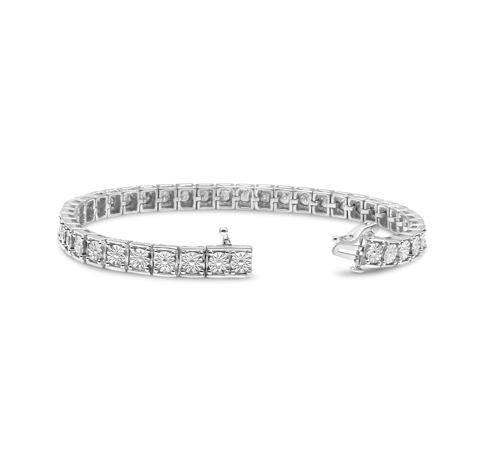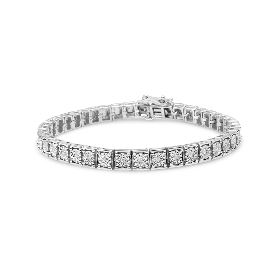 Want to level up your tennis bracelet game? This stunning piece that features 25 natural round diamonds that total up to 1/4 cttw with alternating beaded links for extra sparkle. Set with a miracle setting in a Sterling Silver link bracelet, the arm candy gives off a slightly different allure compared to the usual design. It’s secured with a box clasp. Stack them with another arm candy to tune up the glamour.