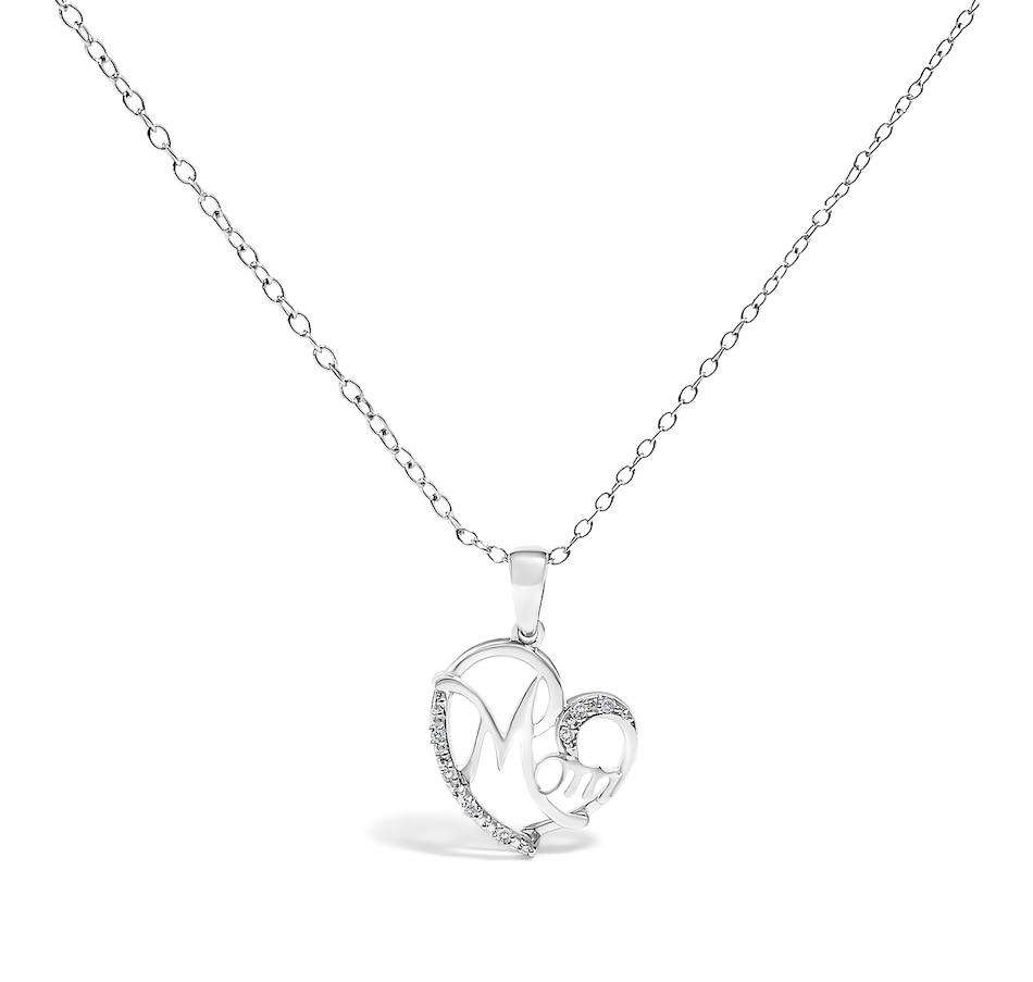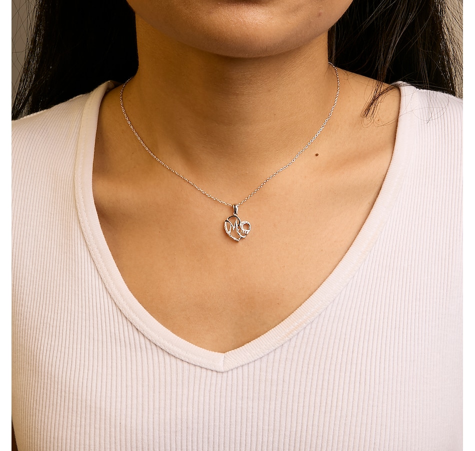 Silver Cursive Mom Heart Diamond Accent Pendant Necklace