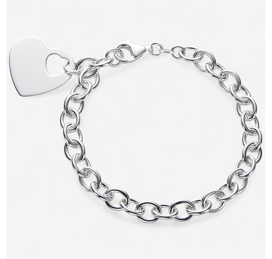 Accessorize every look in eye-catching, irresistible style wearing this beautiful heart charm bracelet from Silver Gallery.