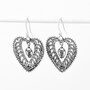 Add some universal style to your look with these heart earrings from Silver Gallery, featuring a detailed filigree design.