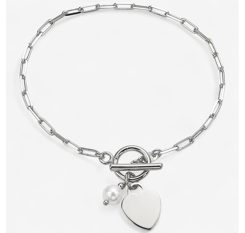 Sterling Silver Heart Toggle Bracelet With Pearl Accent