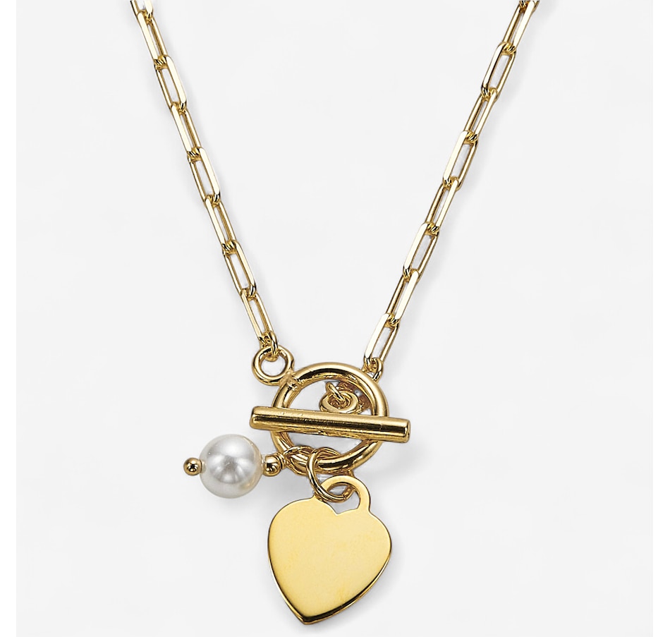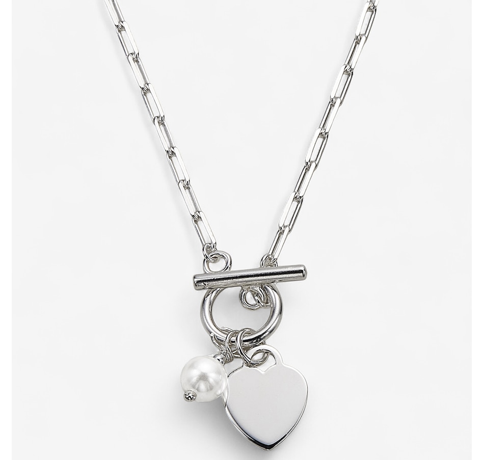 Sterling Silver Heart Toggle Necklace With Pearl Accent