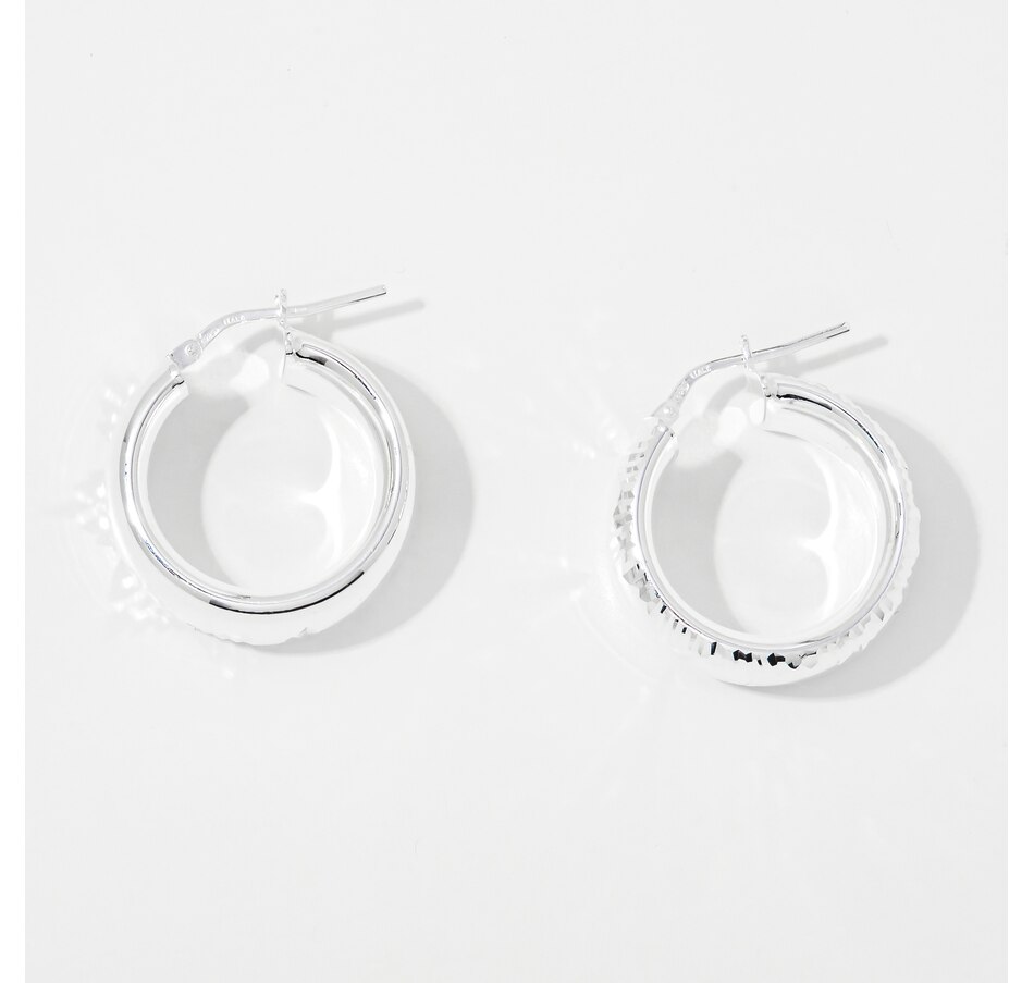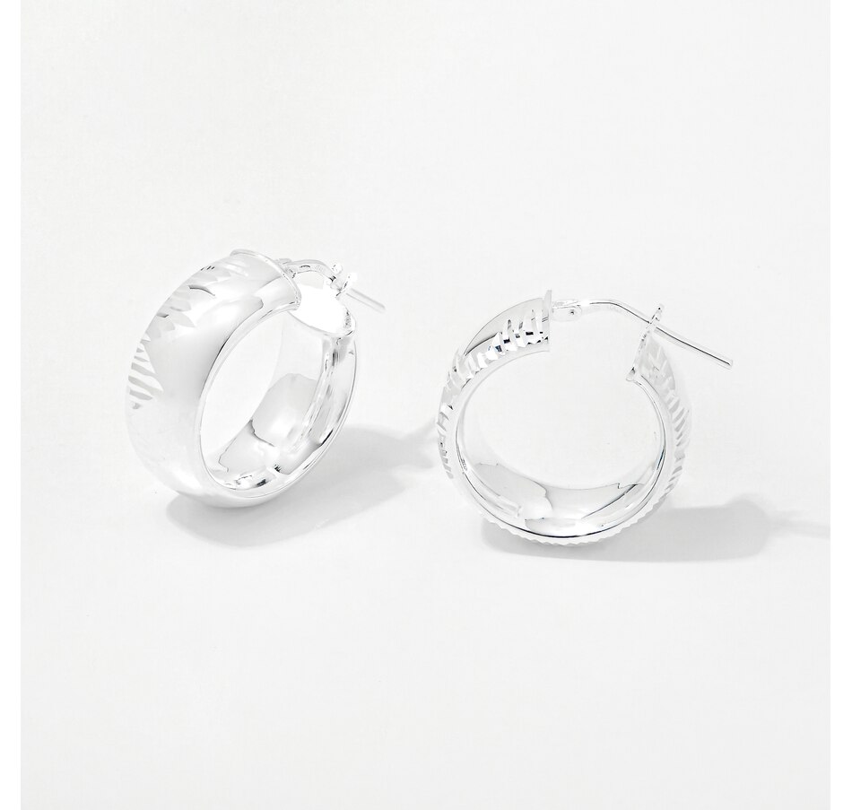 Sterling Silver High-Polished Diamond-Cut Hoop Earrings