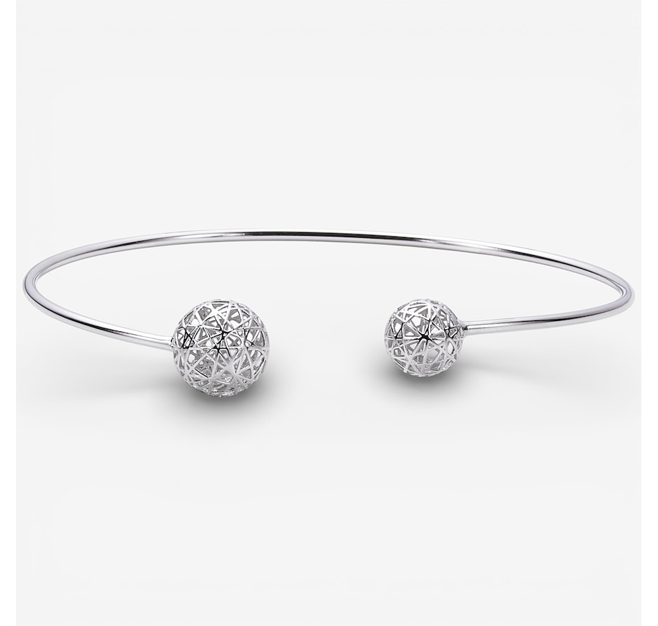 Sterling Silver Rhodium Plate Bangle With Textured Ball Detail