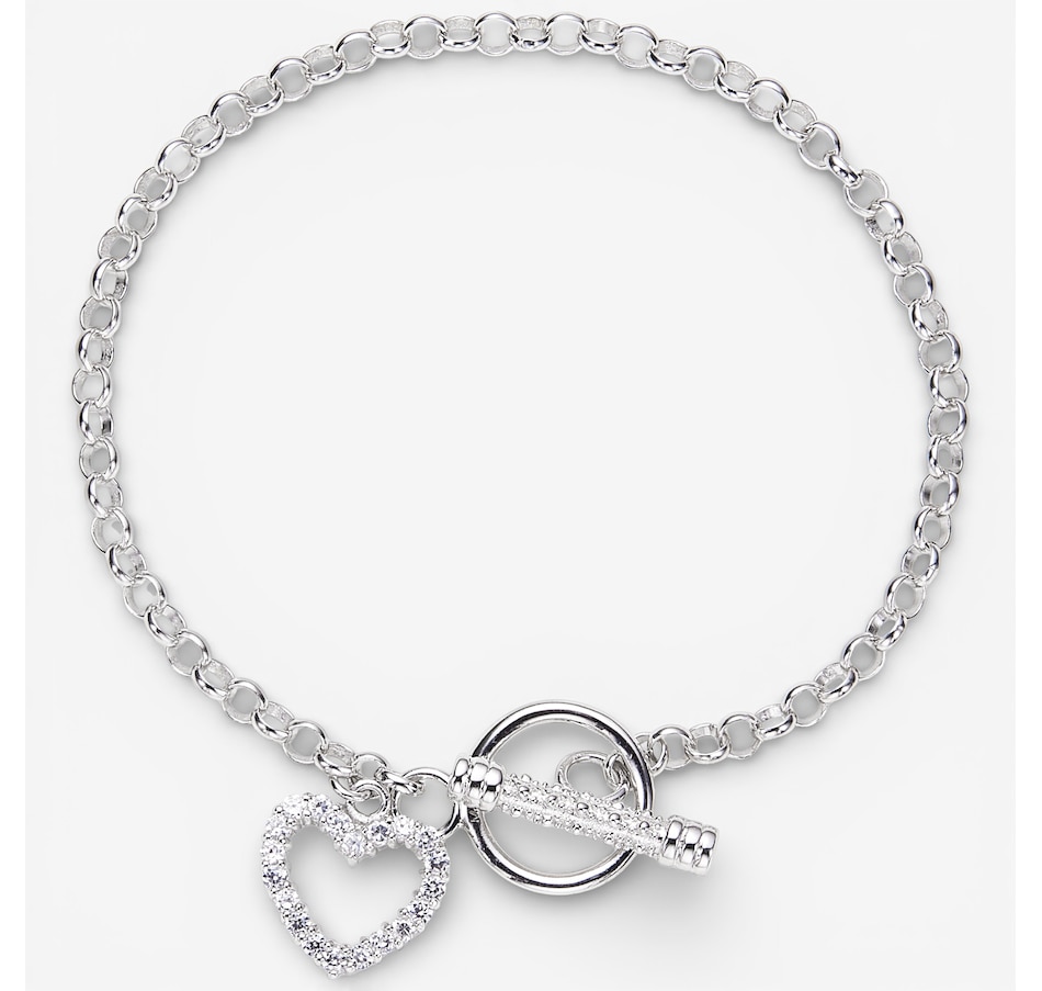 Add a delicate touch of sparkle with this sterling silver toggle bracelet from Silver Gallery, featuring a charming heart accent adorned with cubic zirconia stones. The polished design offers timeless appeal, while the secure toggle clasp ensures a comfortable fit. Made in Hong Kong and nickel free, this piece is perfect for everyday elegance or gifting.