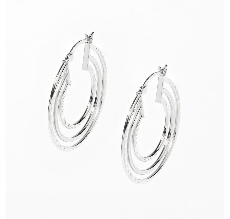 Sterling Silver Triple Row Hoop Earrings