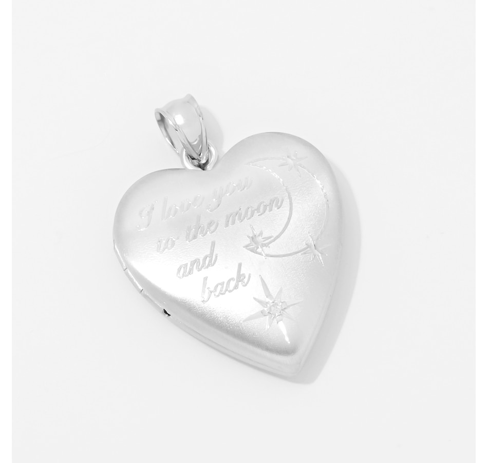 Sterling Silver/Rhodium Plated Heart Locket with Moon Detail