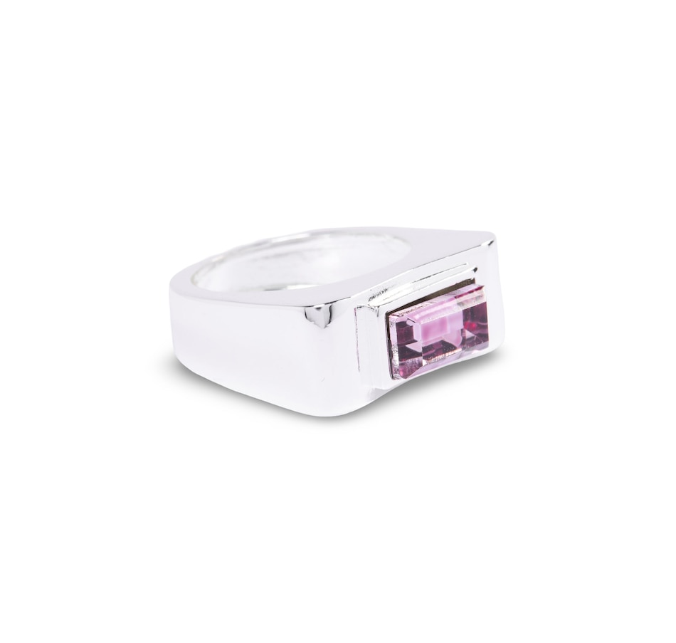 Introducing our seriously chic Rectangle Stone Ring €“ it's everything! Chunky and perfect, wear it all day, every day. This is our founder's favorite creation from this collection.Silver over Brass with Purple Diamond Stone