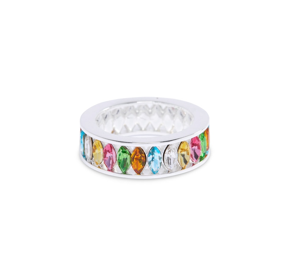 Discover our most coveted piece yet the Multi Stone Colorful Marquise Ring. Radiating with all the hues of the rainbow, this ring is a celebration of vibrant elegance. Each marquise-cut stone is carefully selected to create a stunning kaleidoscope of color that captures attention wherever you go.Silver over Brass with Multi Color Stones