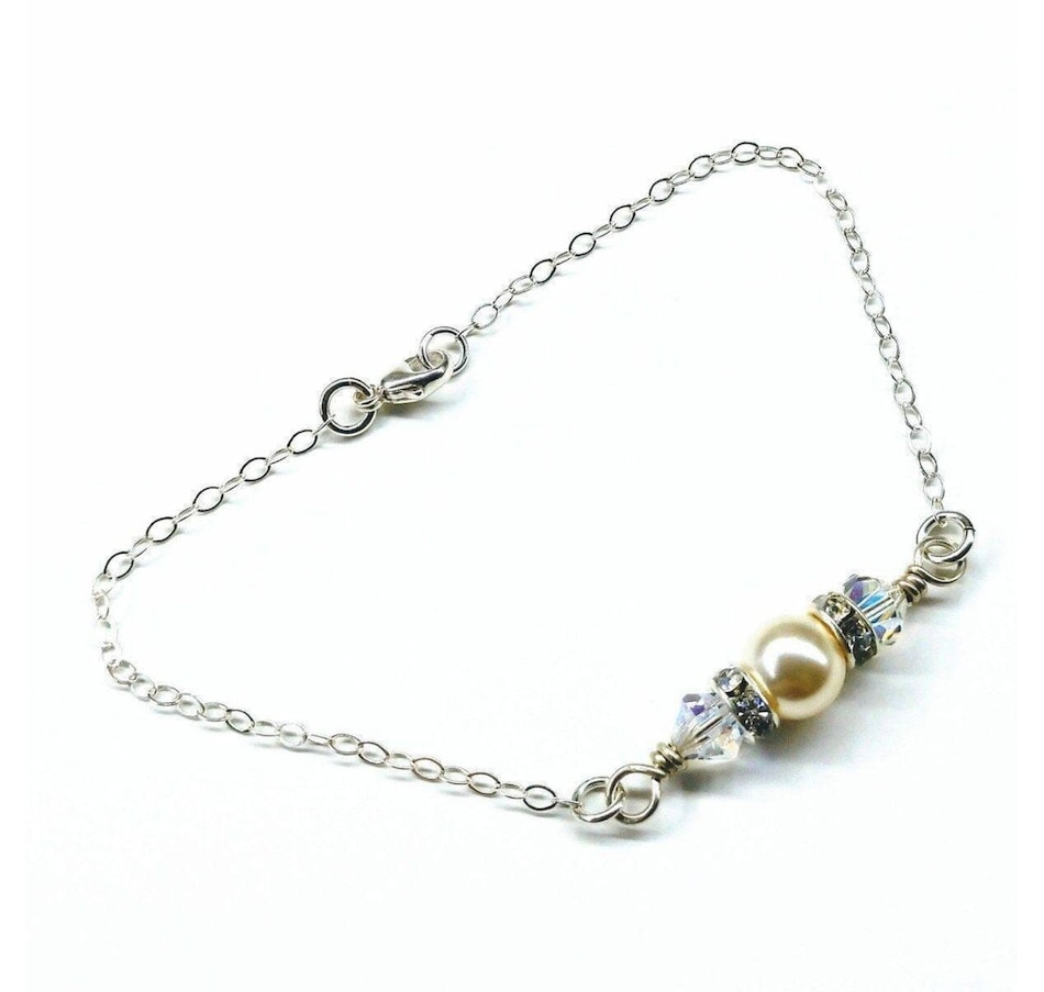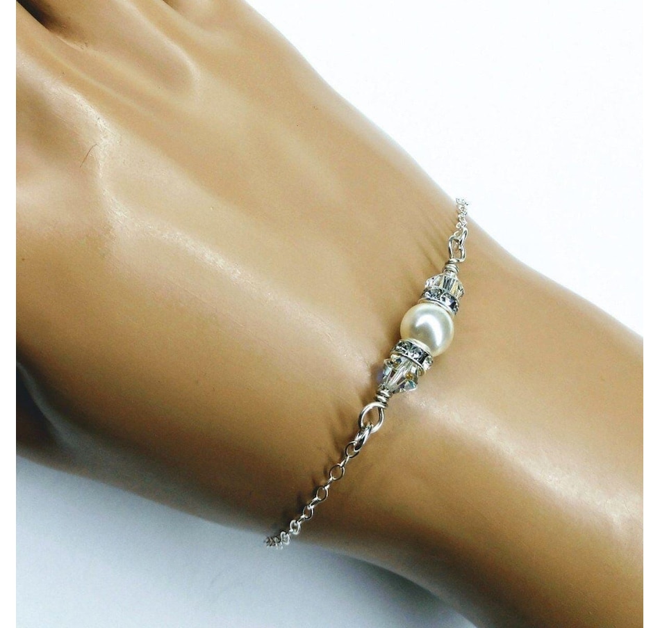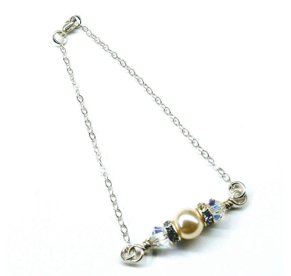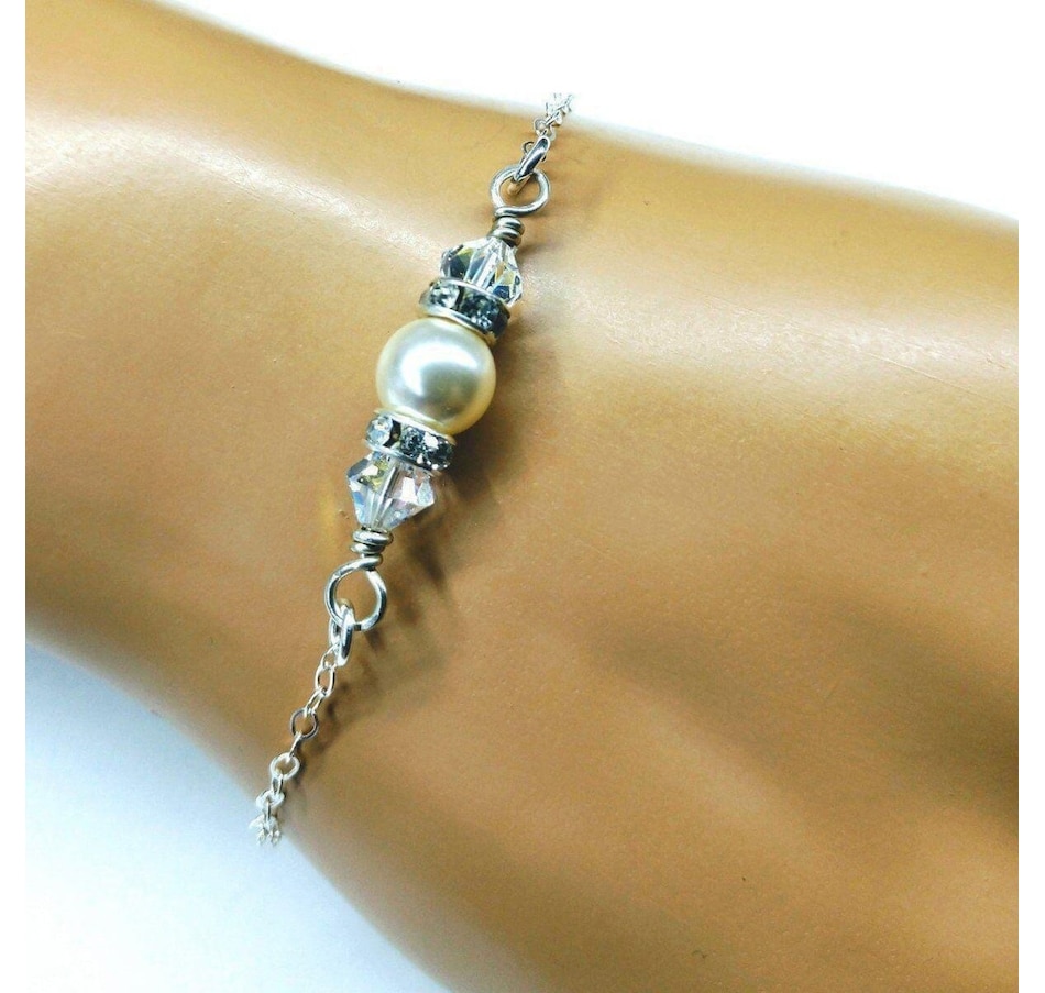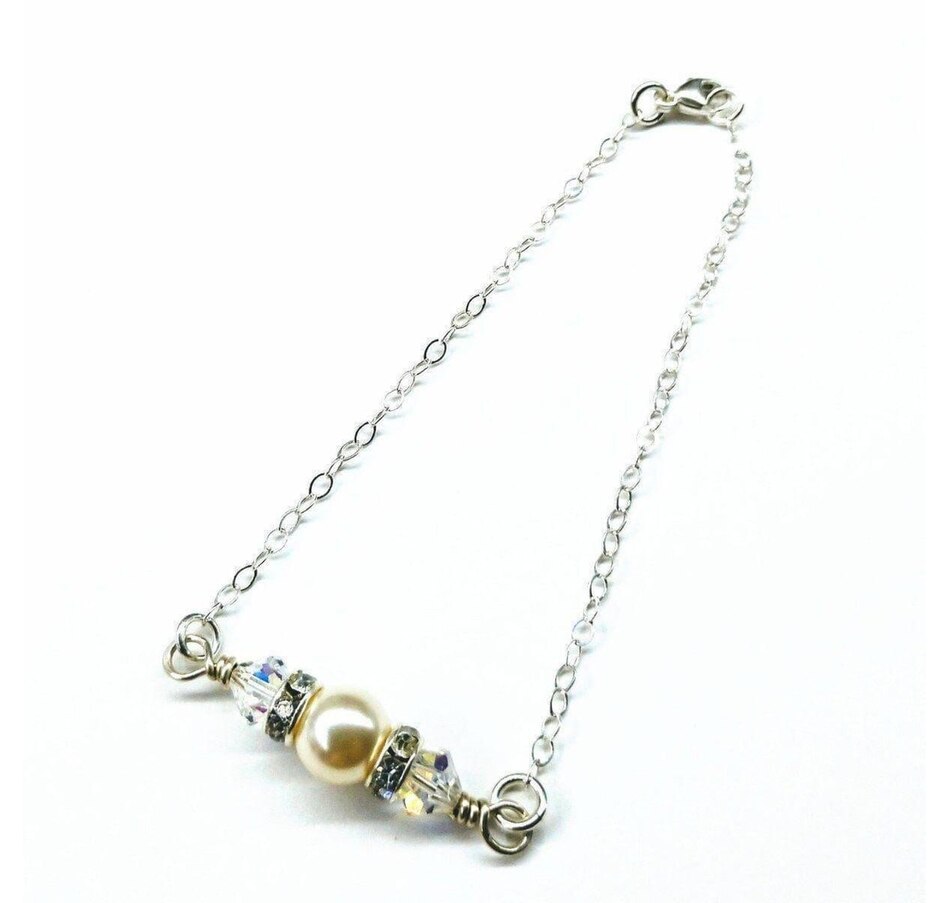 Proudly wear this handmade Swarovski crystal pearl bracelet at your high school reunion or even to your own wedding.Sterling silver earrings6 mm Swarovski crystals6 mm Swarovski crystal rondelle 8 mm Swarovski crystal pearlsBracelet length is 7 1/2 inches totalMade in Montana