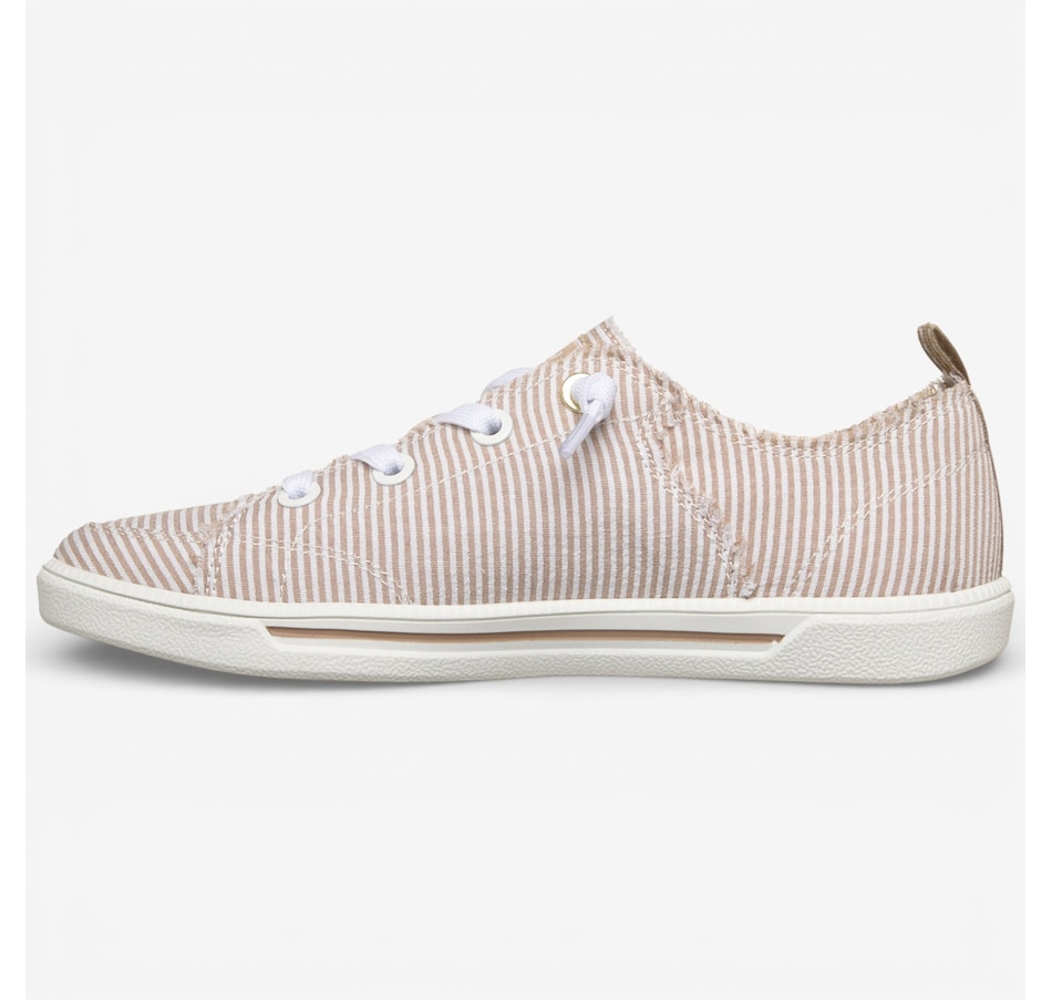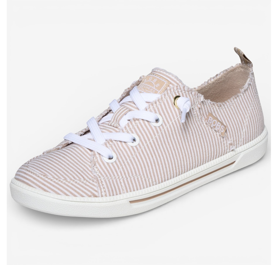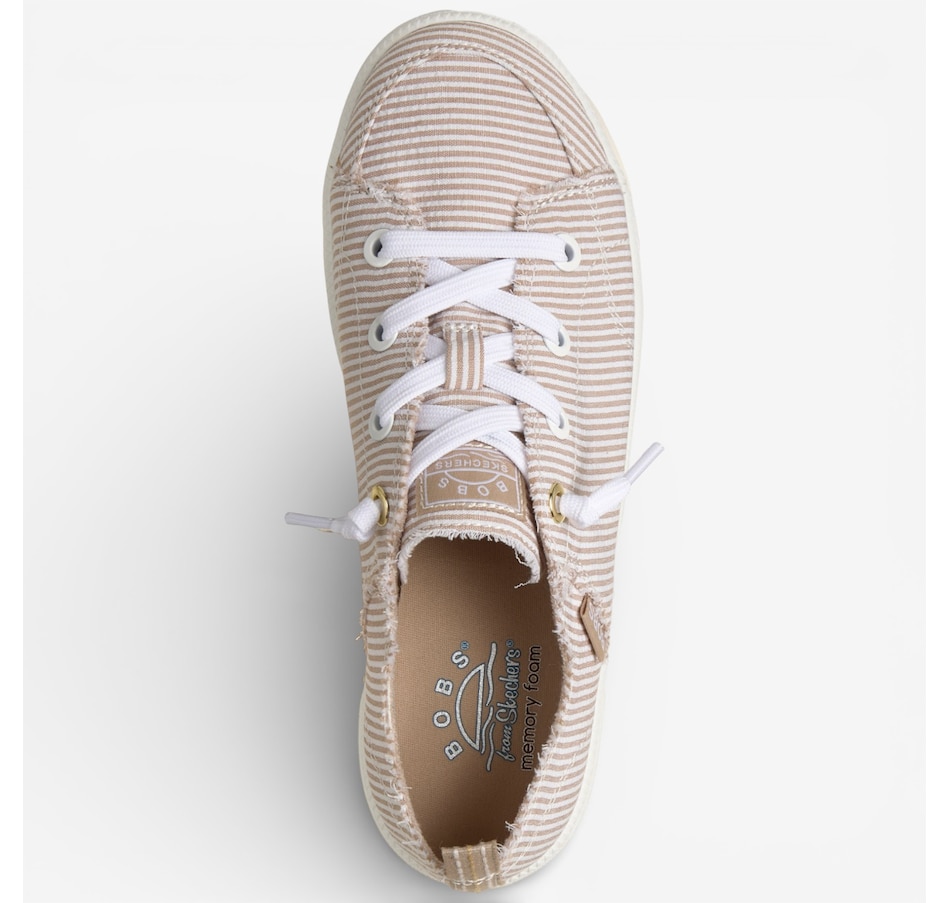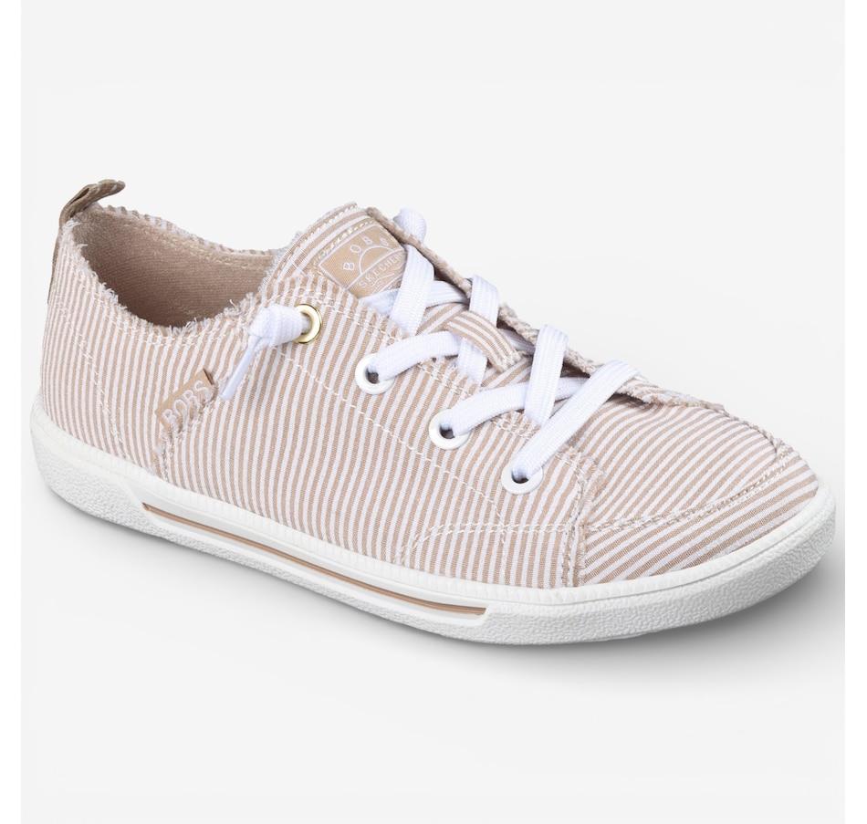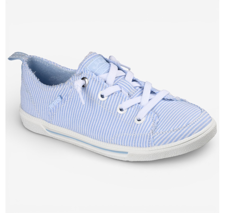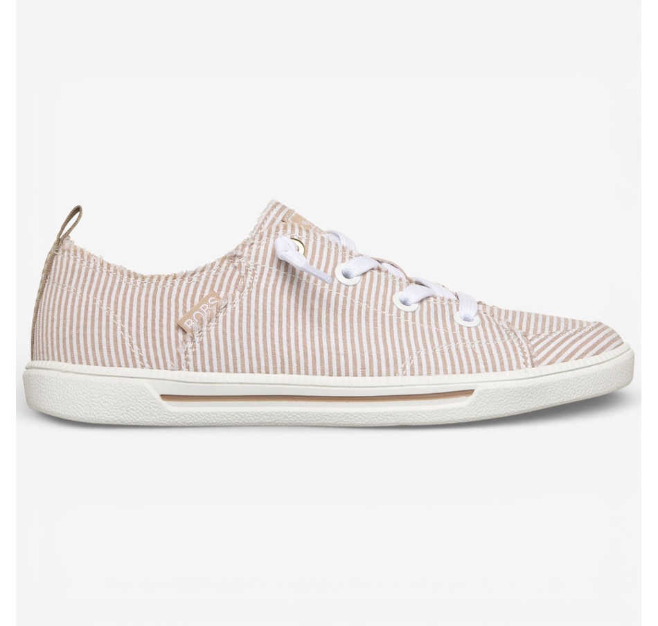 Fresh, playful, and wonderfully easy to wear, the Skechers Bobs B Cute 2.0 – Sea Stripes faux lace slip‑on brings relaxed coastal style to your everyday wardrobe. Designed with a striped seersucker fabric upper, frayed edge details, and tied‑off decorative laces, it delivers carefree charm with the convenience of a No Tie Fit® that stays put. The flexible traction outsole keeps movement light and natural, while the plush Skechers Memory Foam® cushioned insole provides lasting comfort from morning errands to afternoon strolls. Crafted with 100% vegan materials, this slip‑on is the perfect blend of laid‑back style, feel‑good comfort, and effortless versatility.