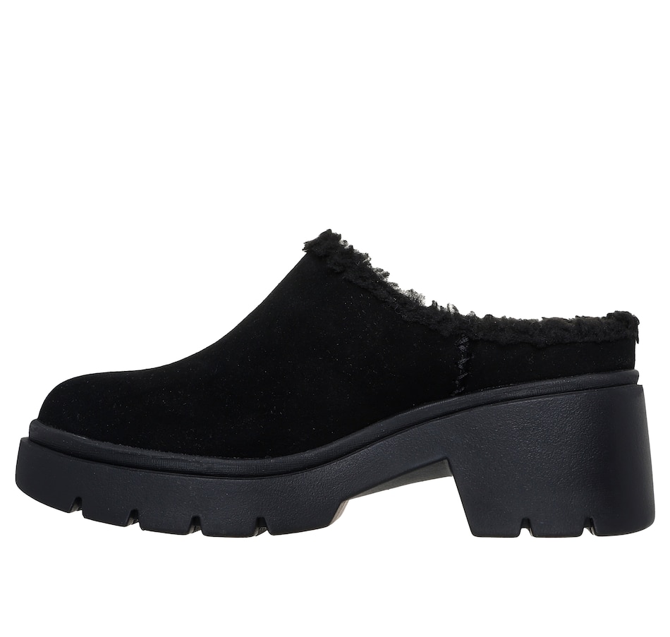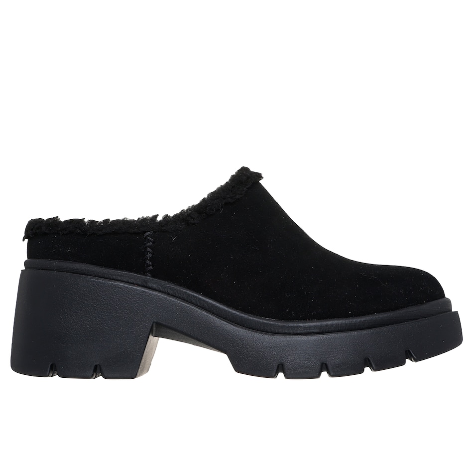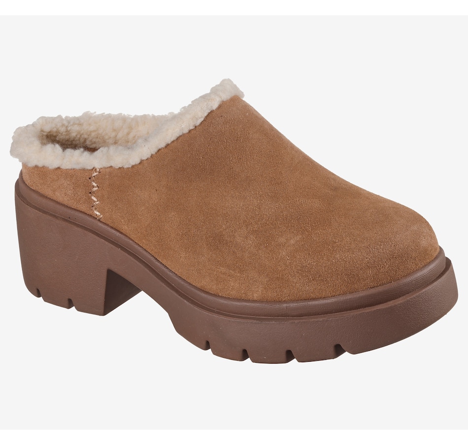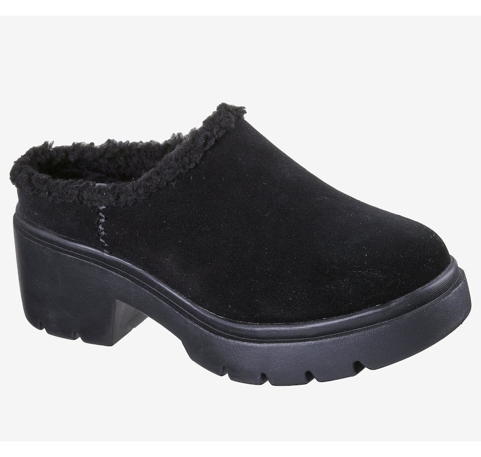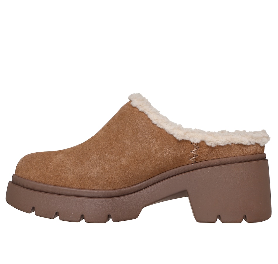 The Cozy City pen back clog is made with a suede upper and faux shearling trim. This open back clog has a chunky articulated midsole, and finishes with a flexible traction outsole. It is also treated with 3M Scotchgard to help resist water and stains.
