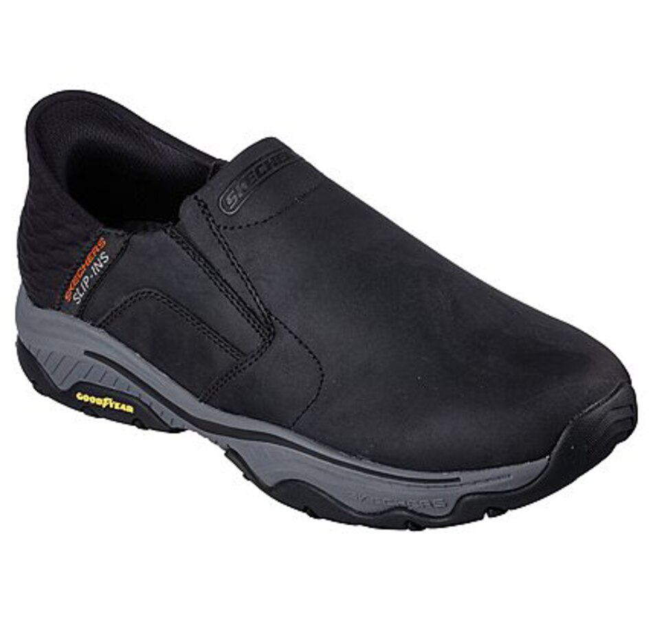 Modern comfort and high traction combine in the Skechers hands free slip-ins relax fit: Craster - Lanigan. Designed with an exclusive heel pillow, this laceless style features a leather upper with twin gore panels for ease of wear, a Skechers air-cooled memory foam, comfort insole, Goga mat arch cushioning, and an anti-slip Goodyear rubber outsole.