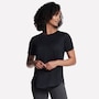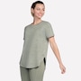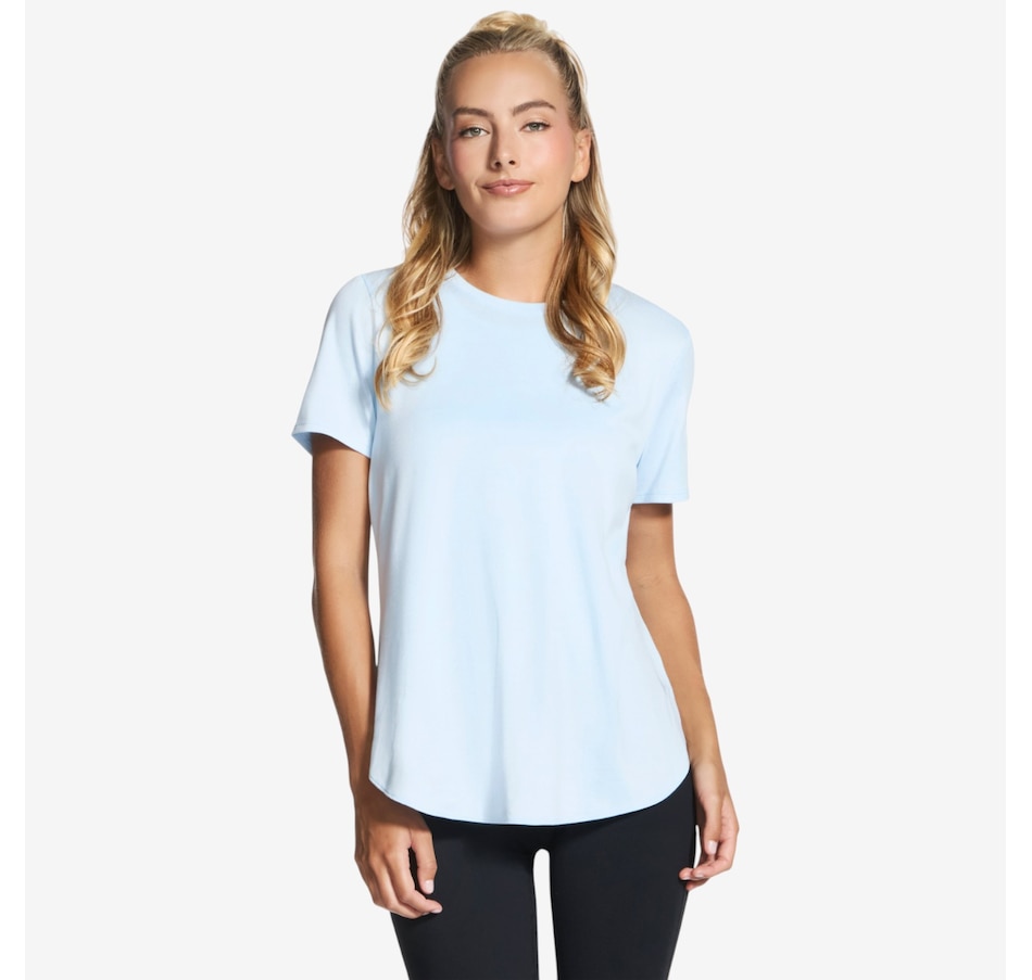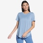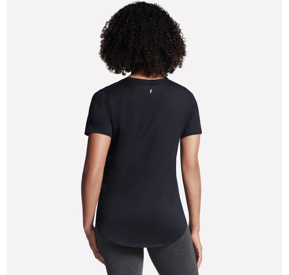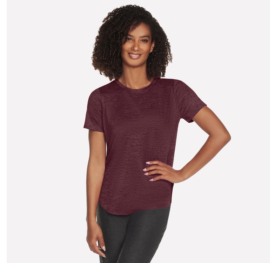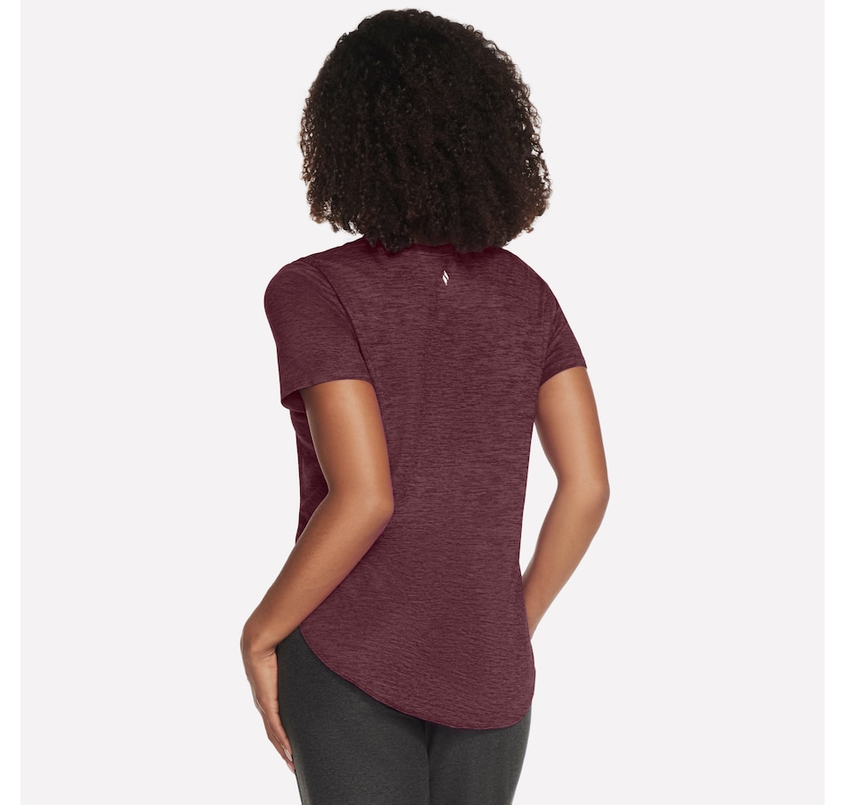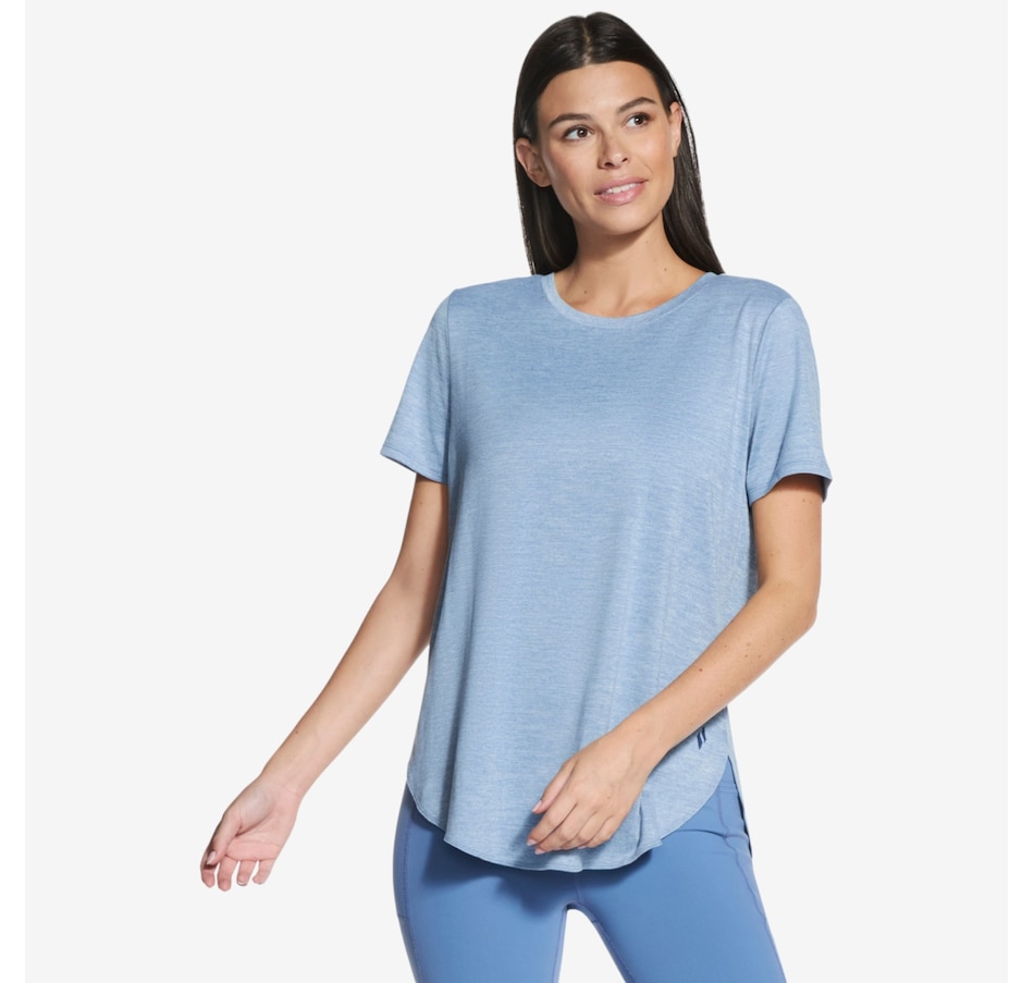 This short sleeve tunic tee from Skechers features a high-low shirt tail hem with side slits.