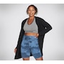 Wrap yourself in soft comfort and versatile style with the Skechers Go Lounge Wear restful hoodigan. This hooded cardigan features a Skechluxe soft and silky French terry knit fabric, on-seam pockets, long sleeves and a relaxed slouchy fit.