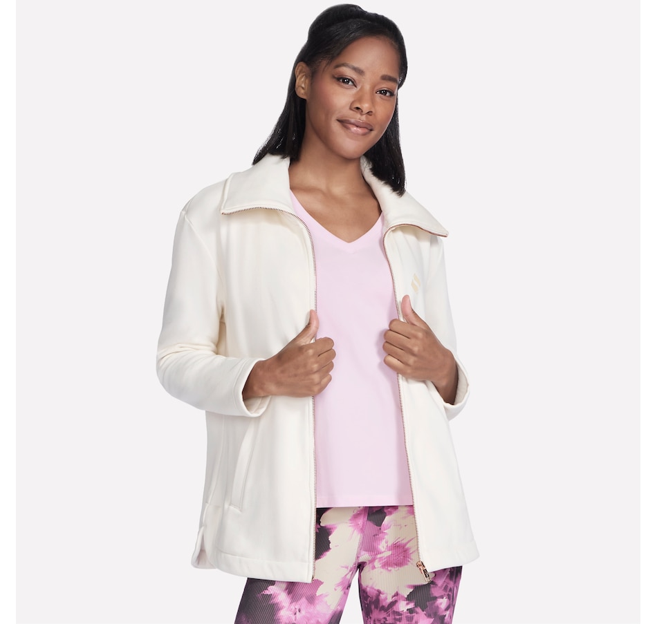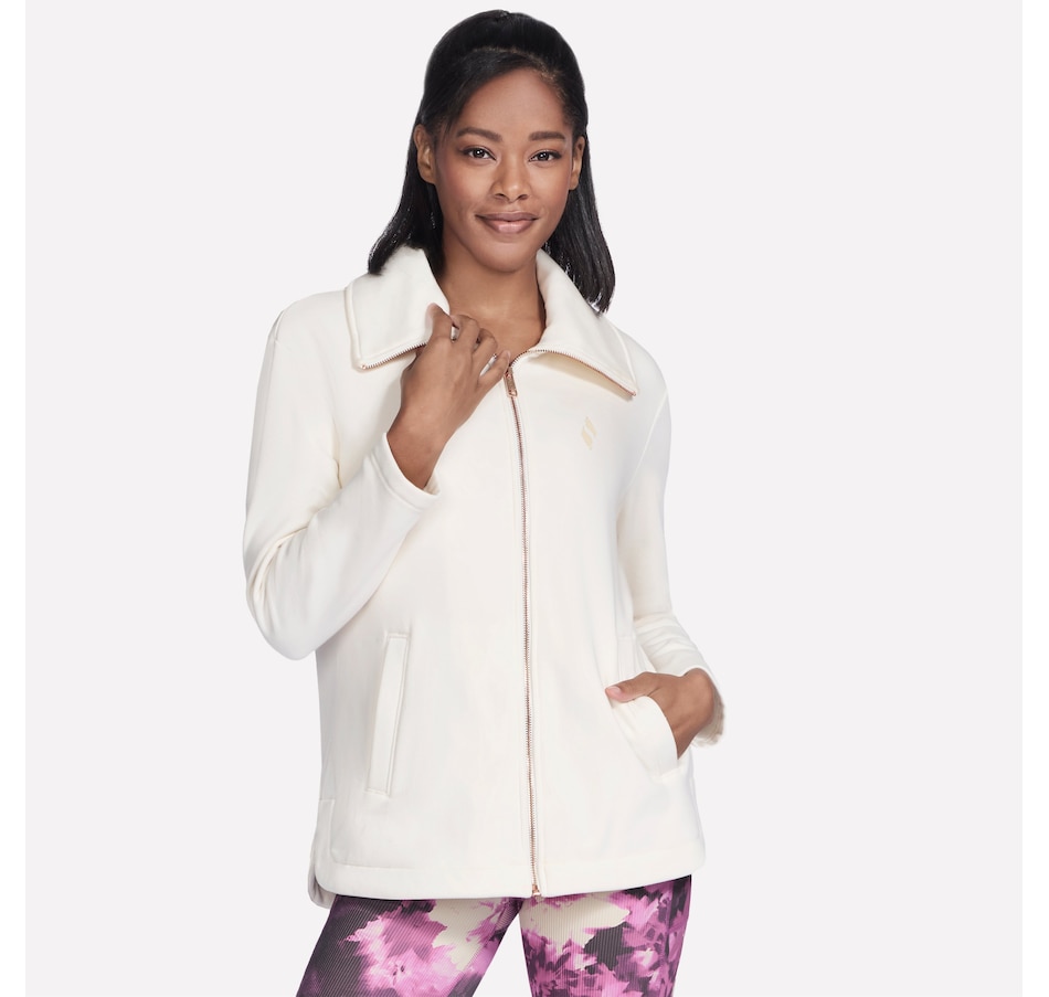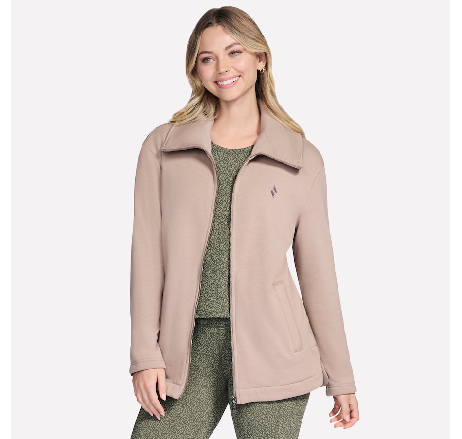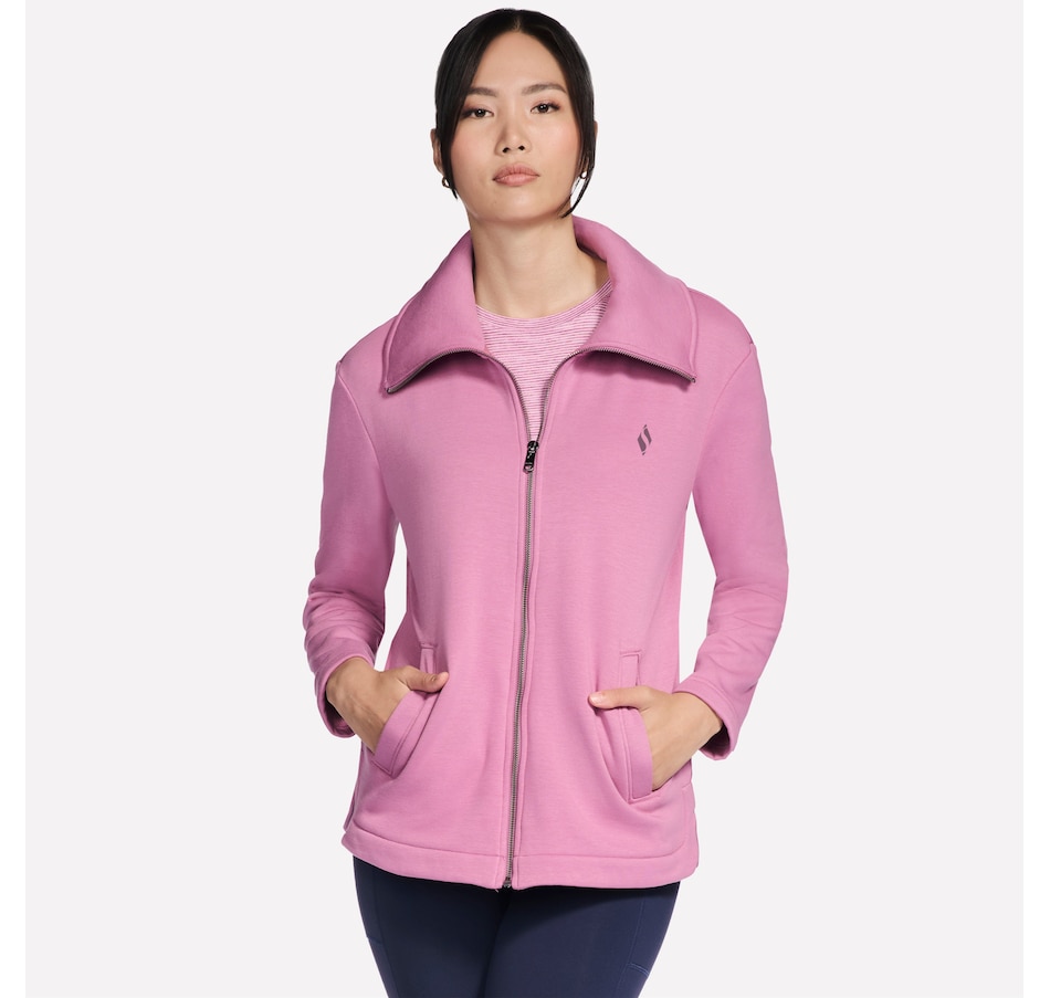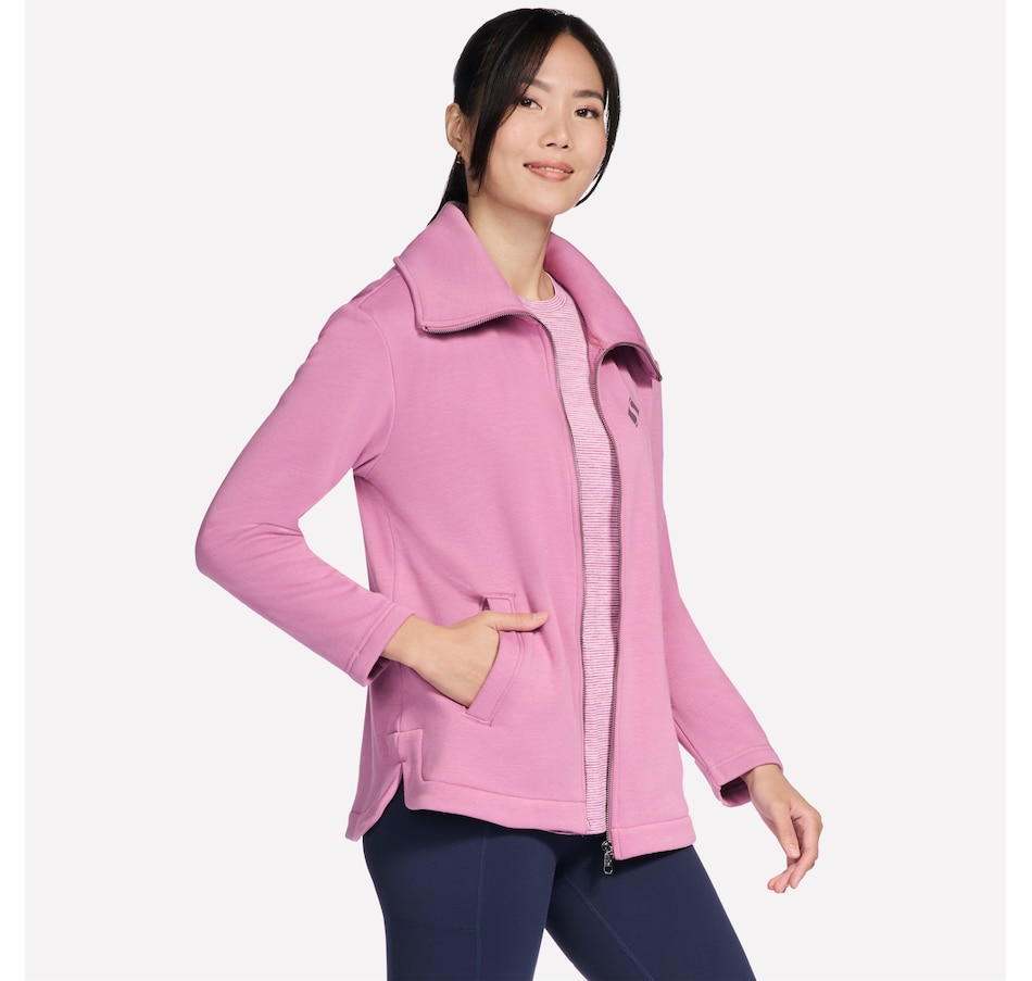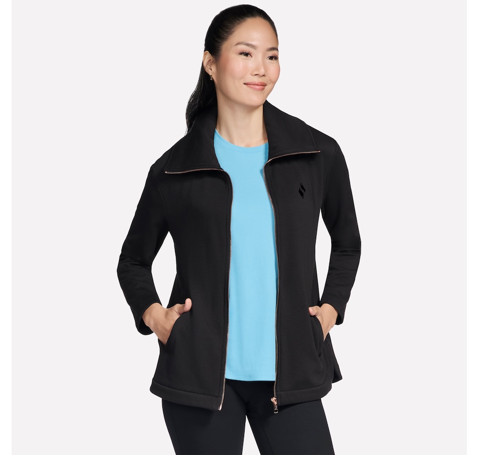 This long-sleeve collared jacket from Skechers features a fold over collar, front welt hand pockets, and a slit at the side seams.