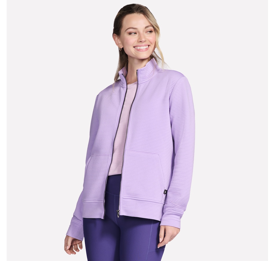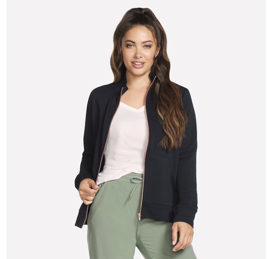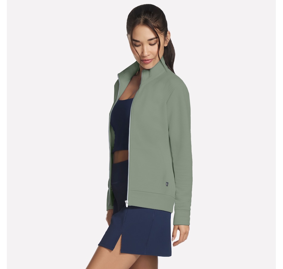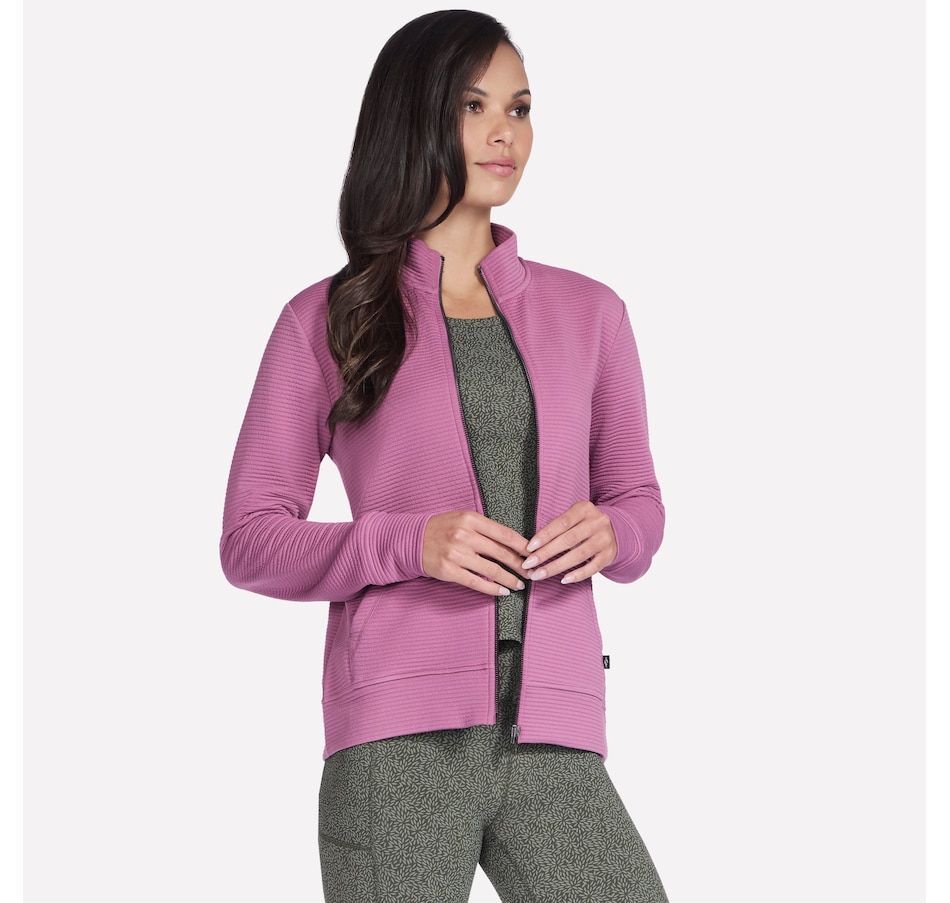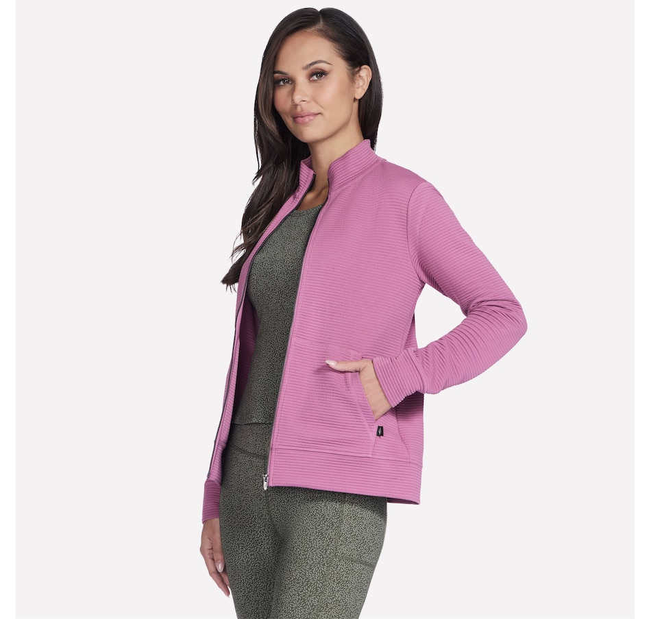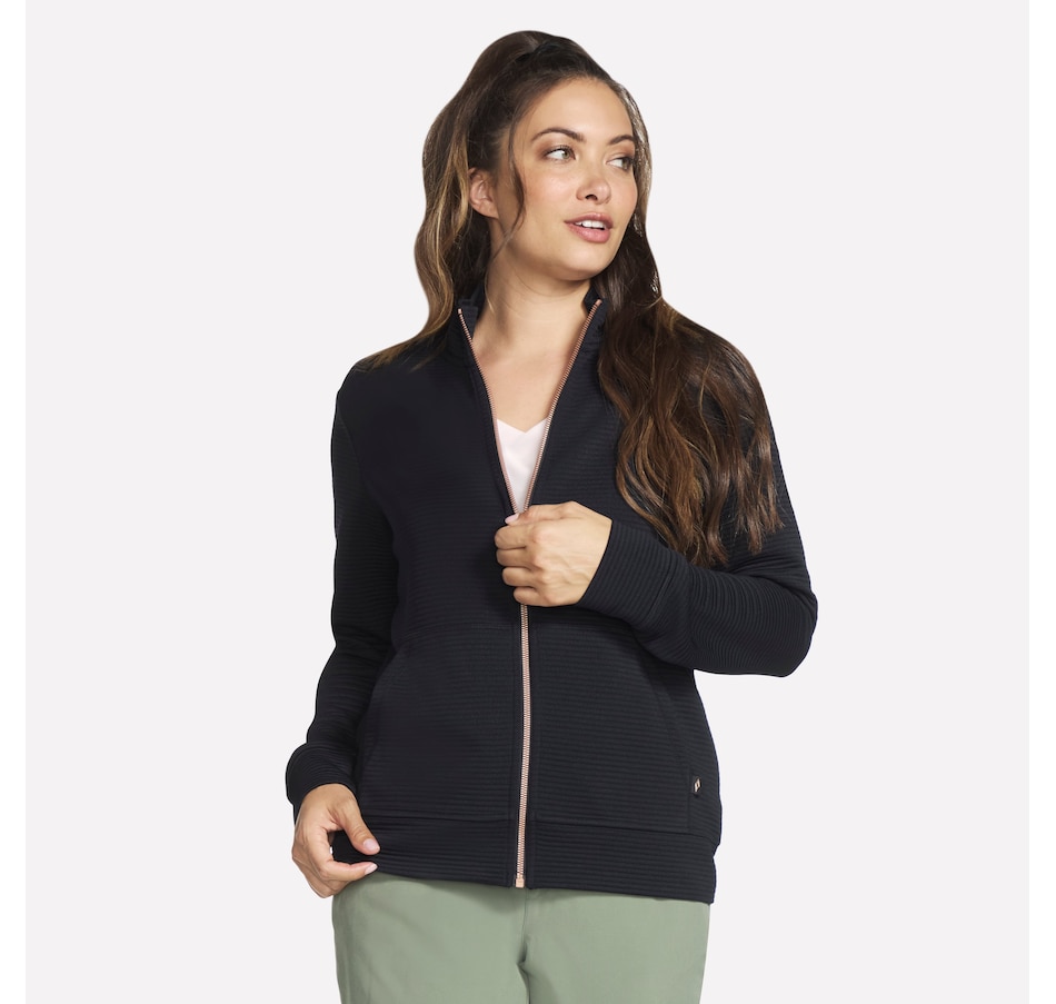 This full-zip mock neck jacket from Skechers has a classic fit, a split kangaroo pocket, and finishes with a signature diamond branded zipper pull.