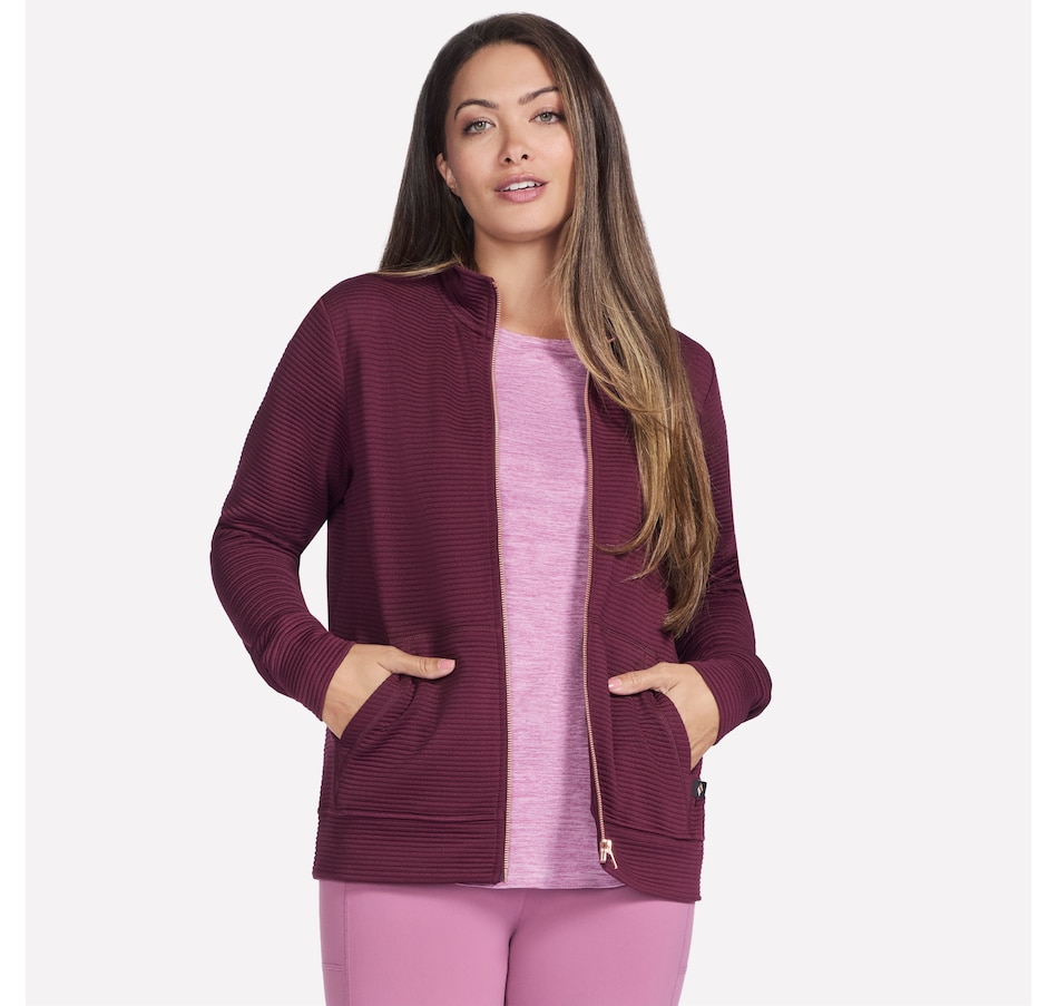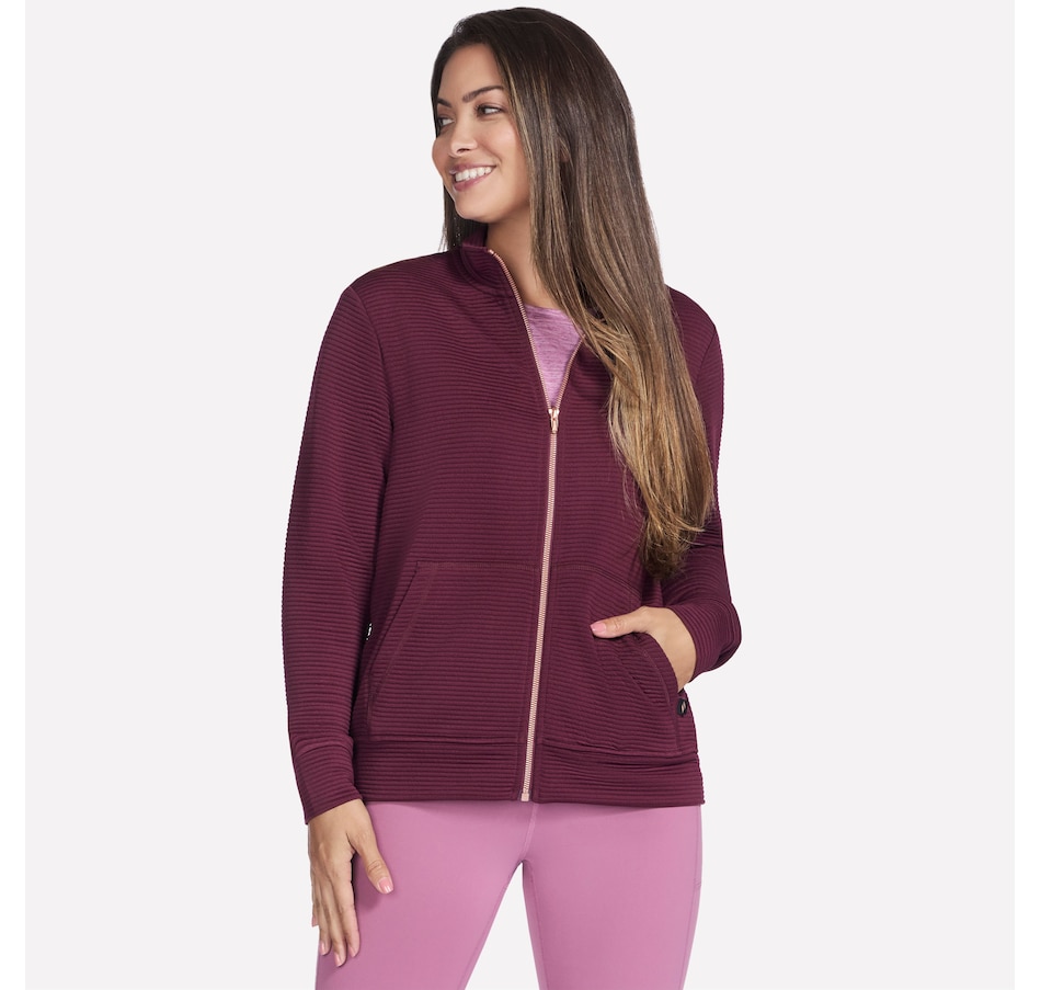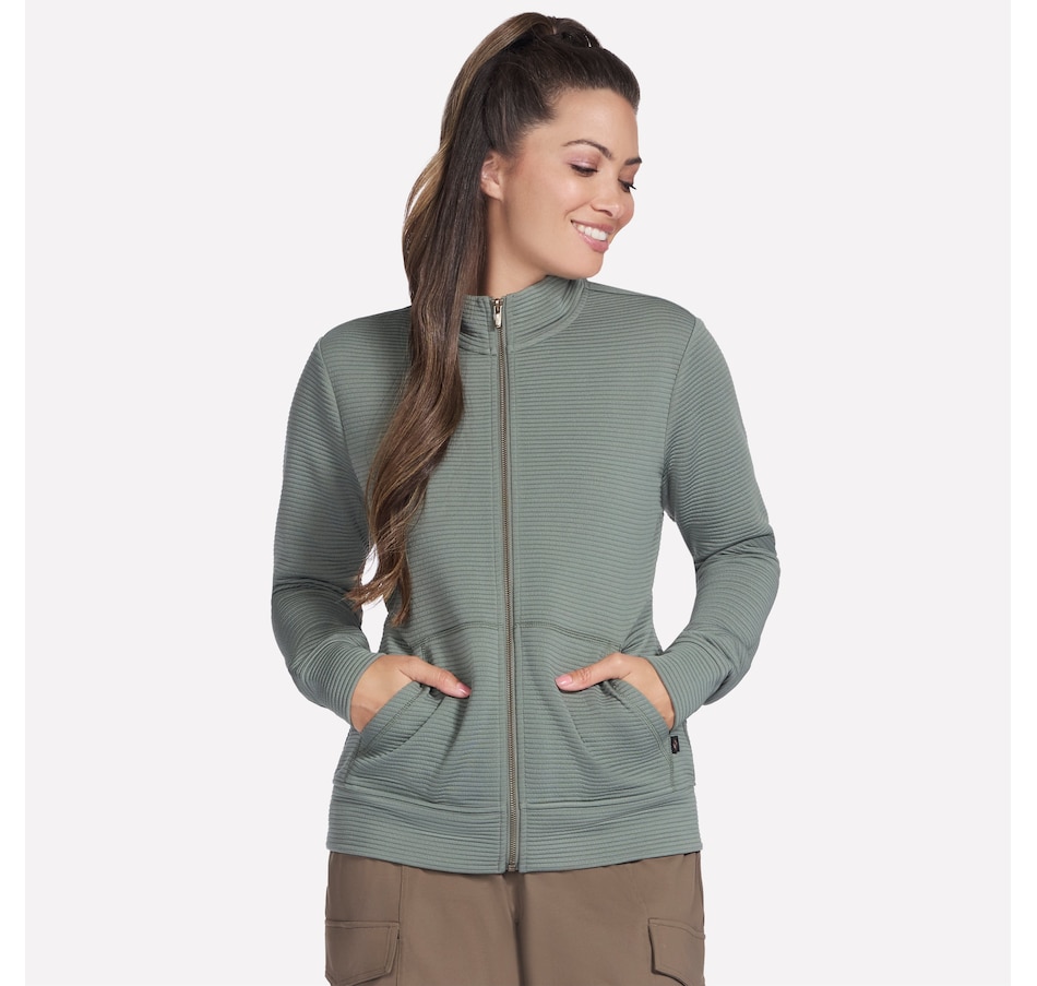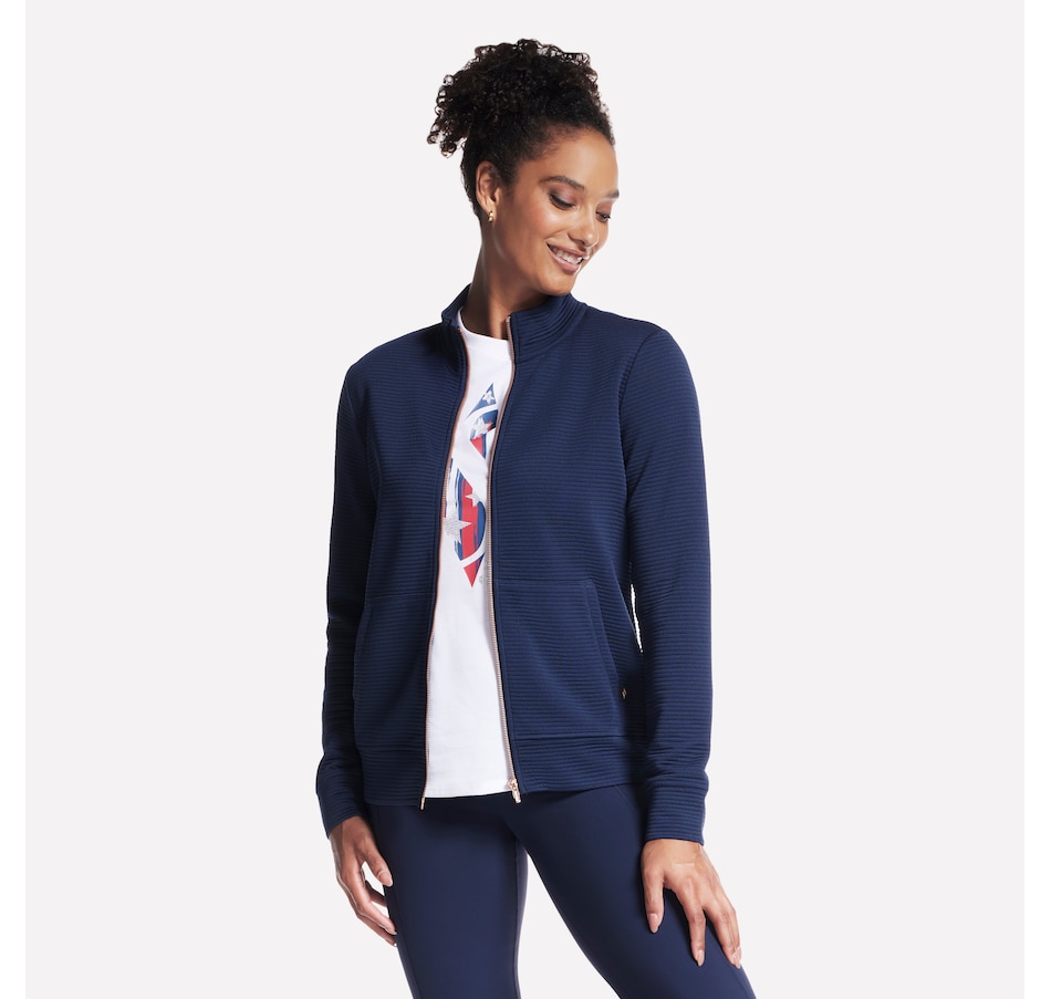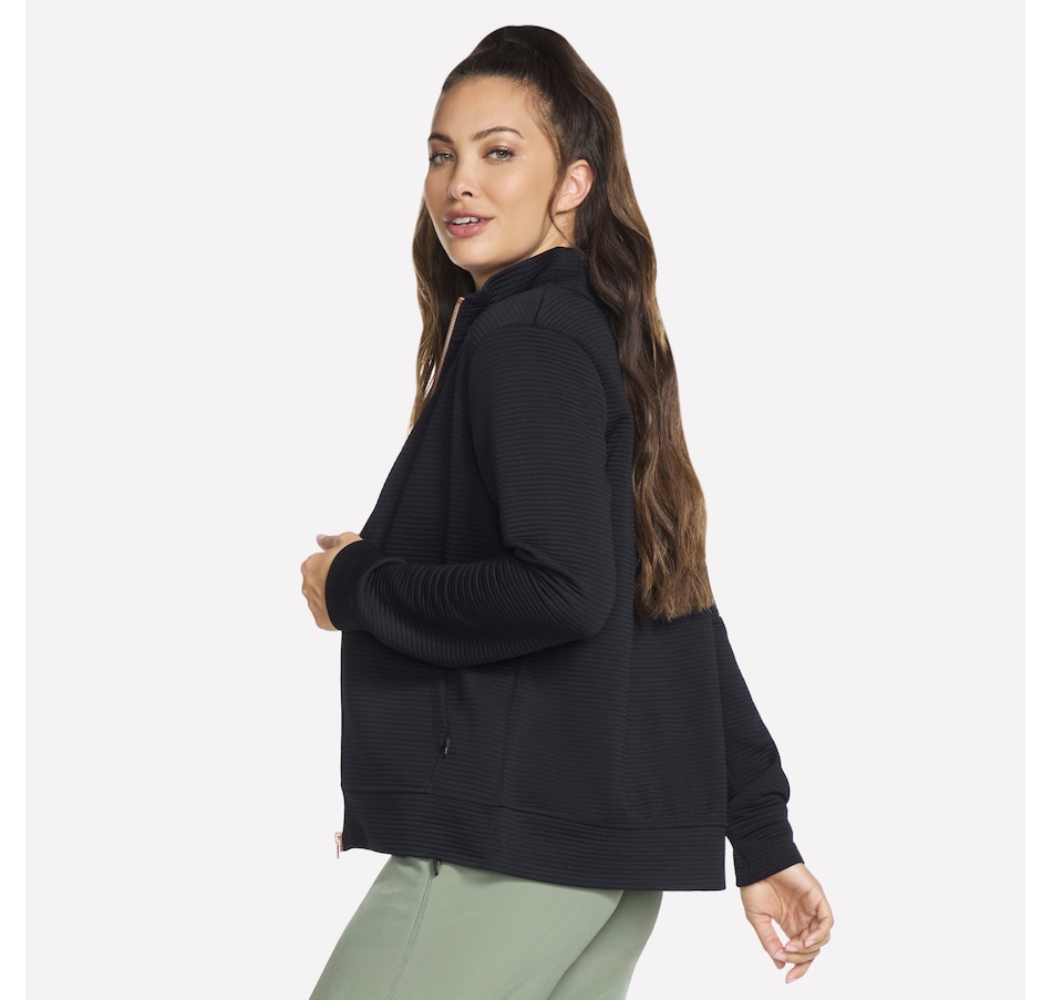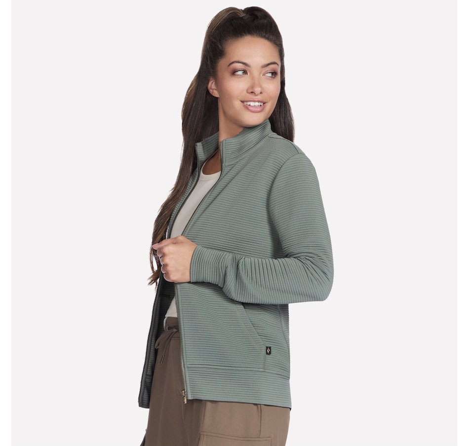 This full-zip mock neck jacket from Skechers has a classic fit, a split kangaroo pocket, and finishes with a signature diamond branded zipper pull.