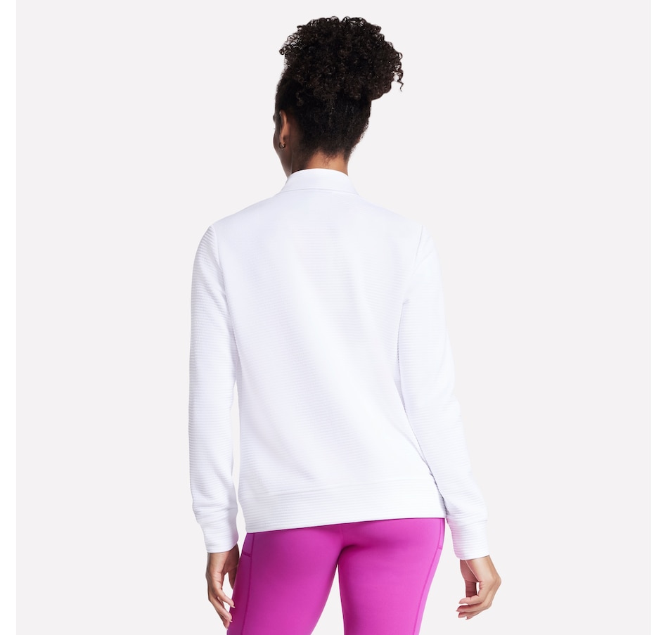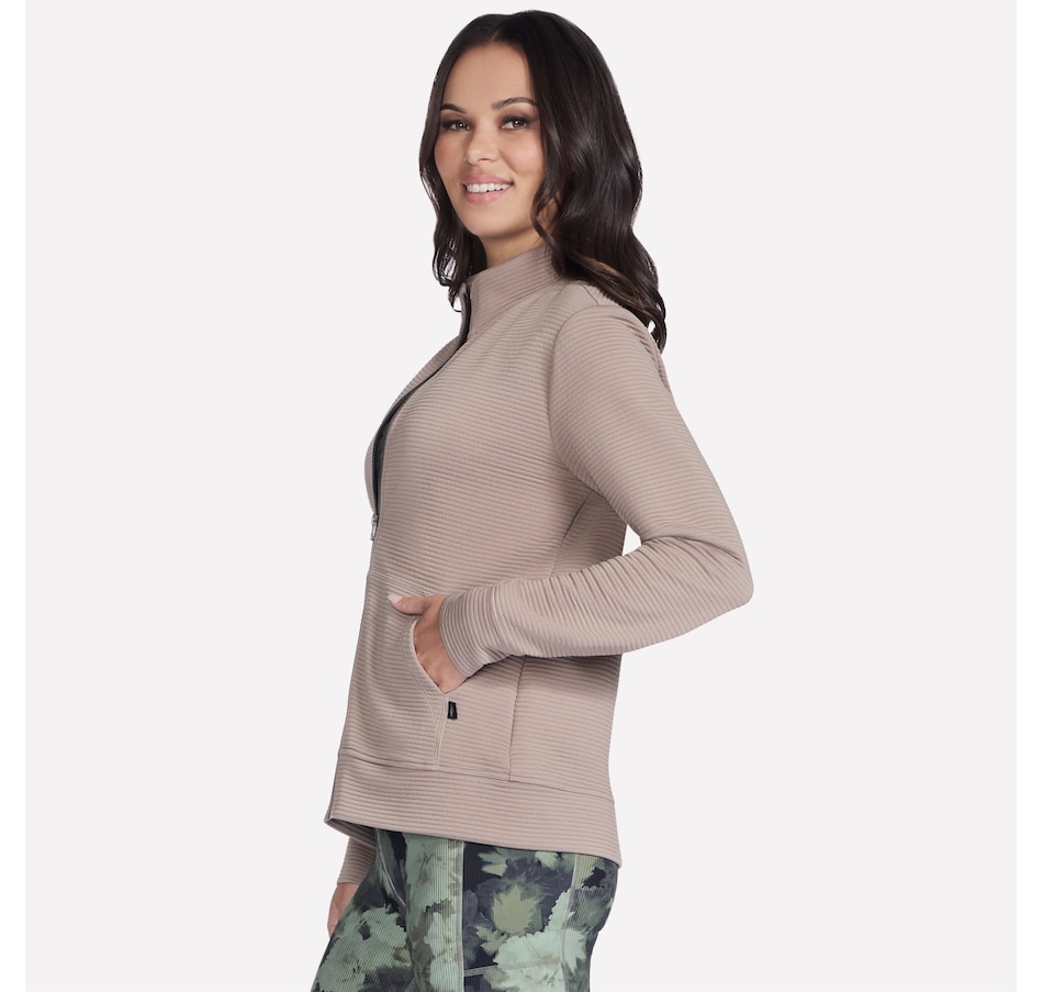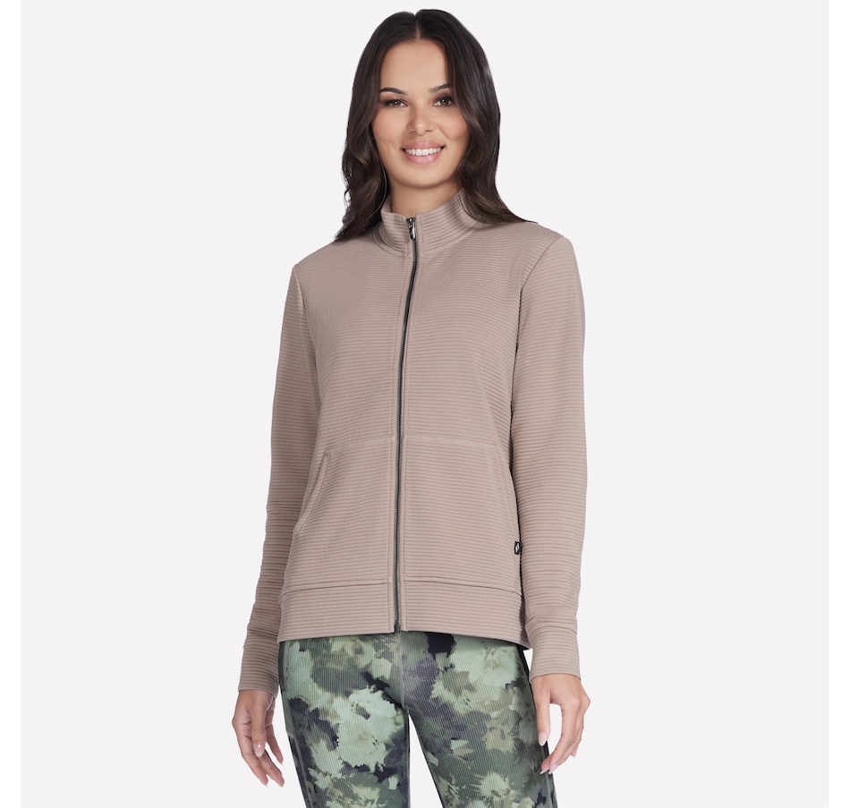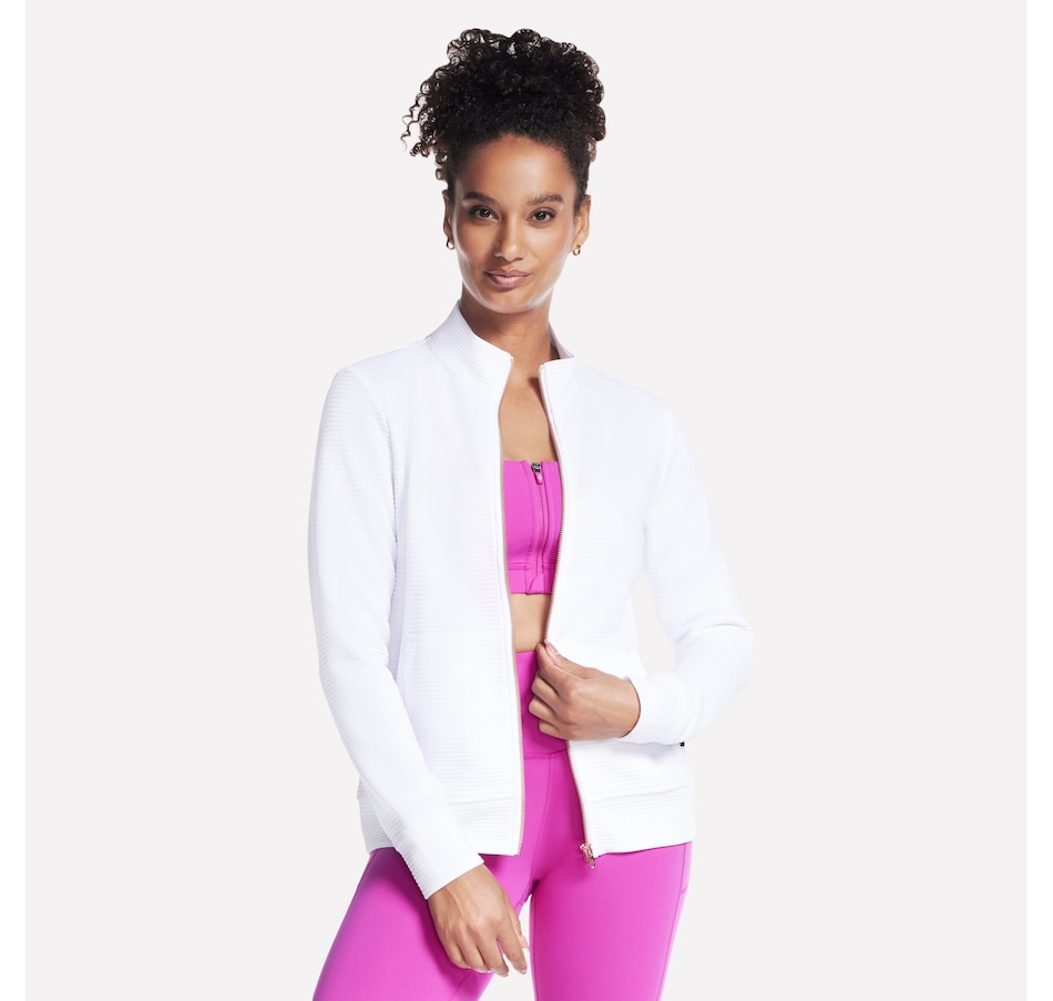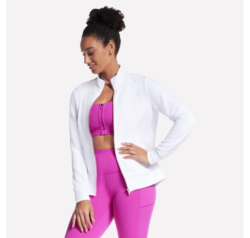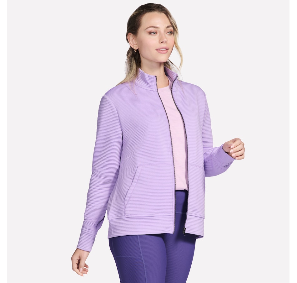 This full-zip mock neck jacket from Skechers has a classic fit, a split kangaroo pocket, and finishes with a signature diamond branded zipper pull.