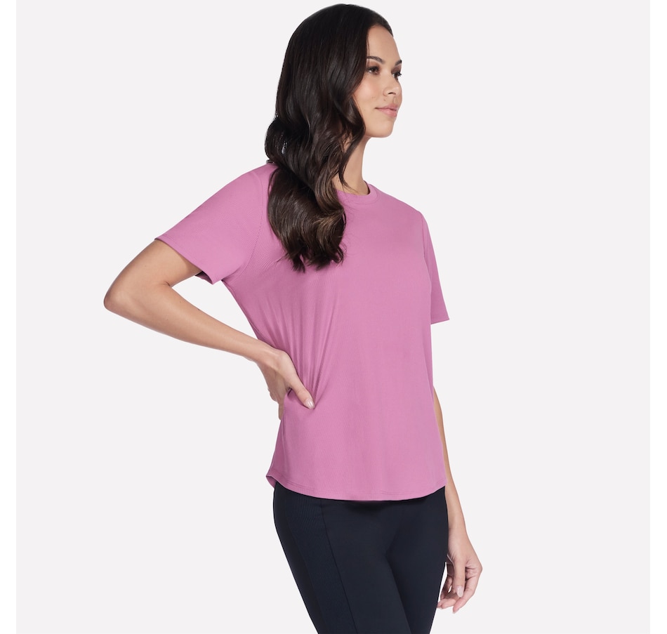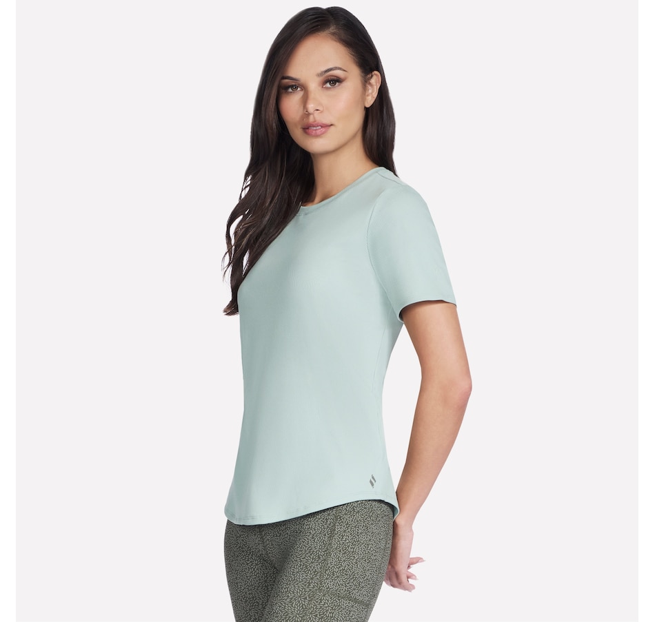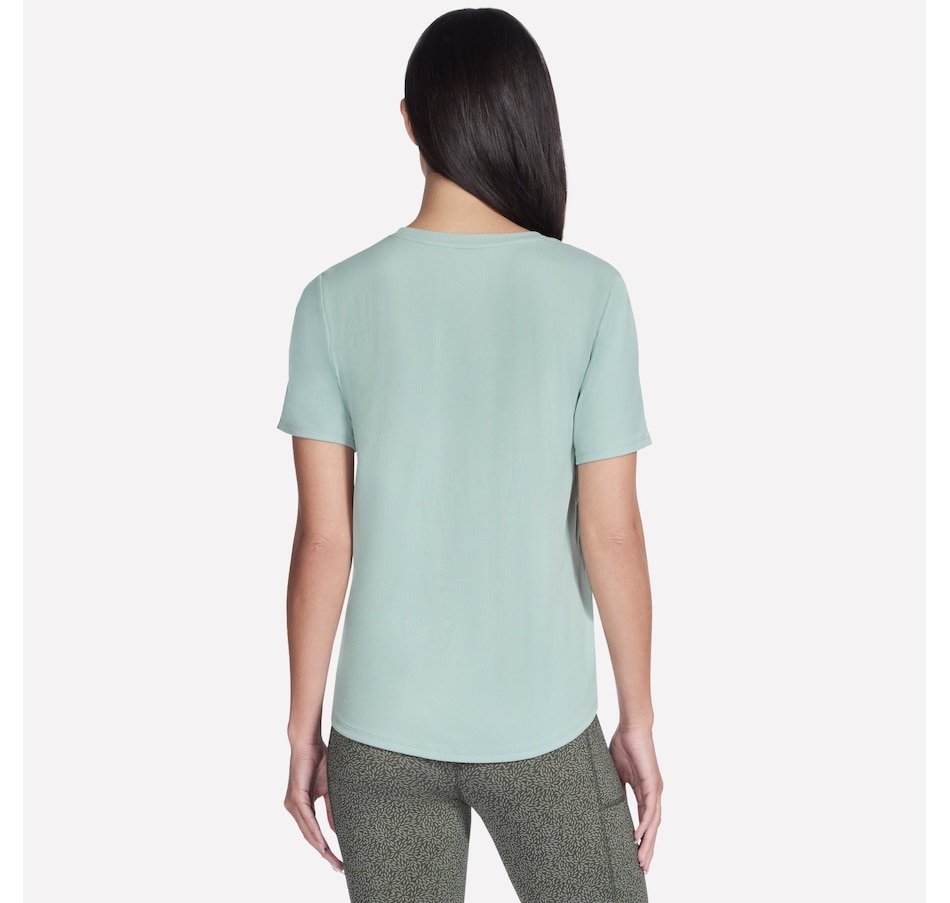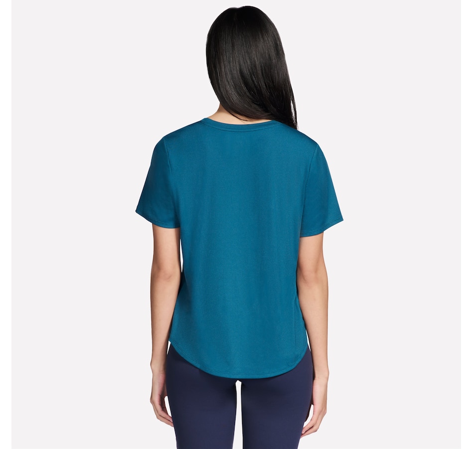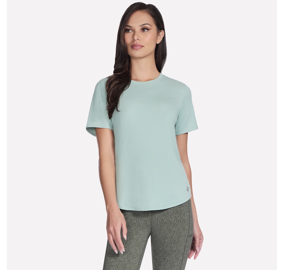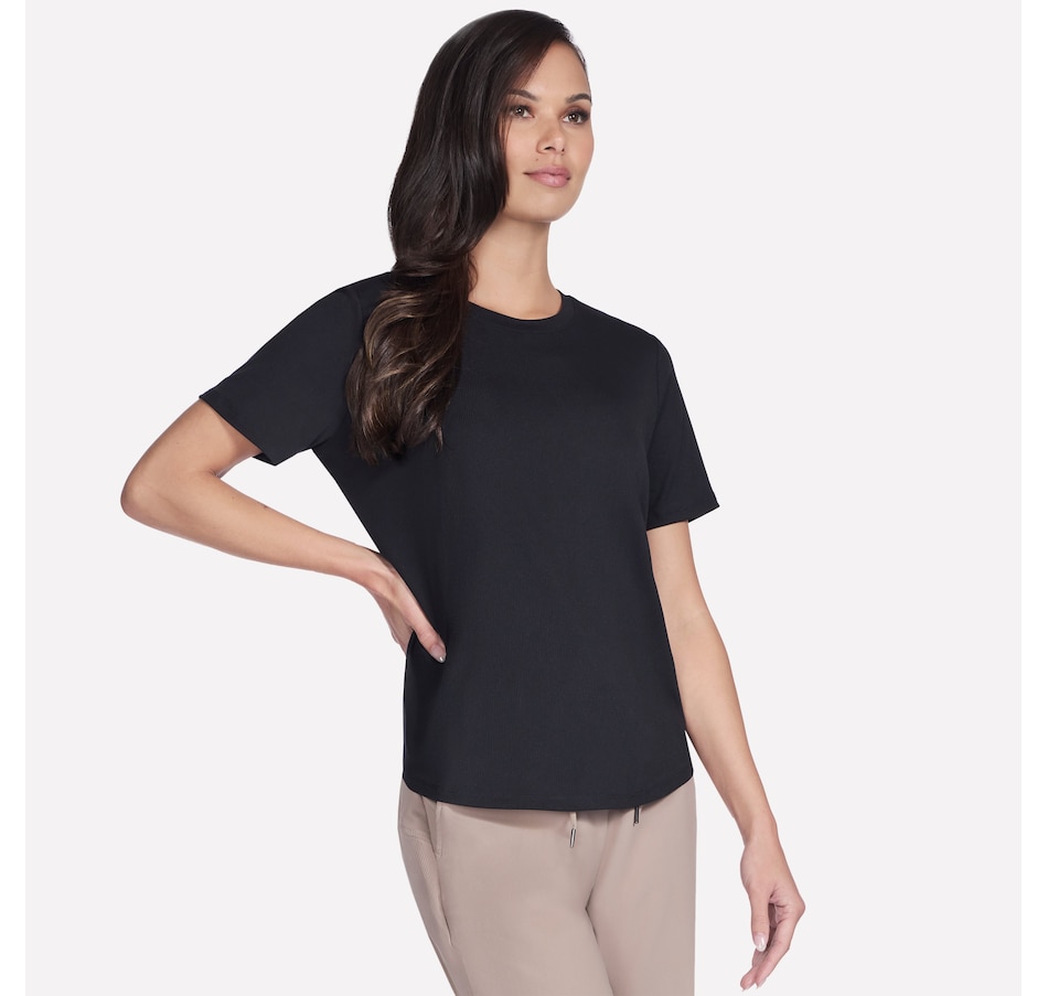 This short sleeve tee shirt from Skechers is designed with a crew neck and curved hem.