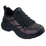 The Hazel-lustrous sheen shoe from Skechers features a rhinestone covered knit upper with deco laces. Paired with the semi-articulated midsole and its metallic heel clip, this fabulous shoe will elevate and dazzle all your athletic looks!