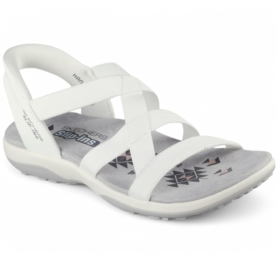 The Reggae flex sandal from Skechers offers hands-free slip-in capability for an easy fit, and the exclusive heel pillow holds your foot securely in place.
