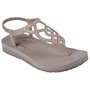 This casual sling-back style sandal from Skechers features a synthetic upper with rhinestone details and a cushioned yoga foam comfort footbed.