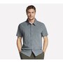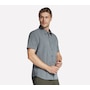 Elevate your look with easy-wearing comfort and versatility in the GO WALK air printed short sleeve shirt from Skechers. It features a lightweight Skechweave Air fabric, a front chest pocket, a classic collar and a front button closure.