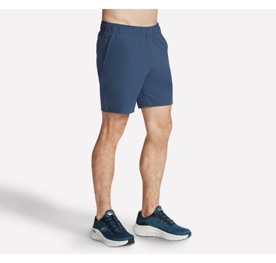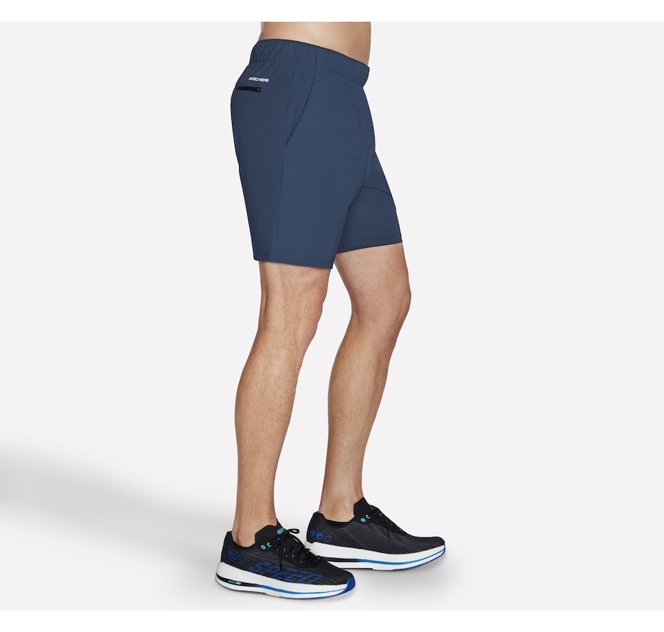 Go the distance in stylish performance wearing Skechers Go Stretch Ultra 7" short. This extra lightweight performance piece features quick-drying, active four-way fabric with an adjustable interior waist cord, front hand pockets, and zipped security back pocket.