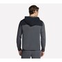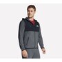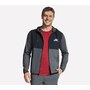 • Full zip, mock neck two panel hood with drawcord, contrast chest panel blocking, zippered hand pockets, elastic binding at sleeve cuffs and bottom hem, reflective Skechers Performance logo on chest, relaxed fit