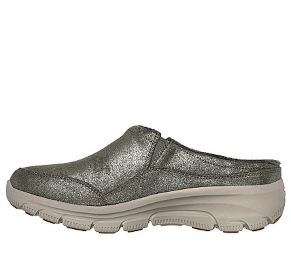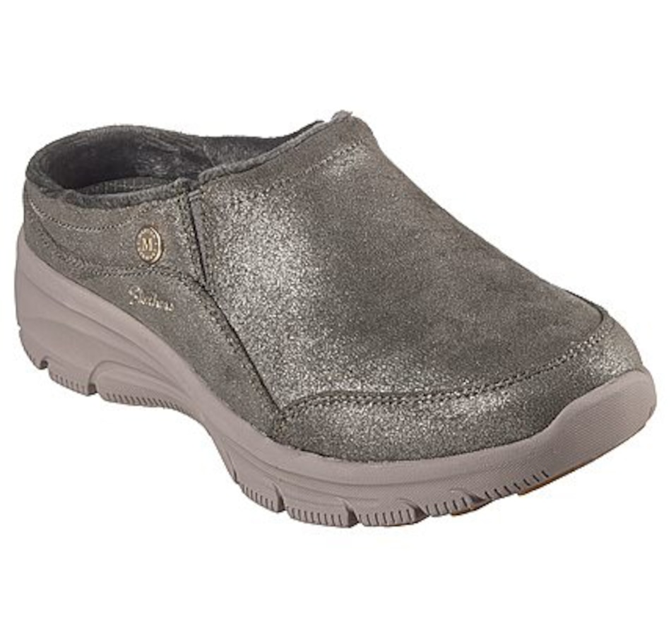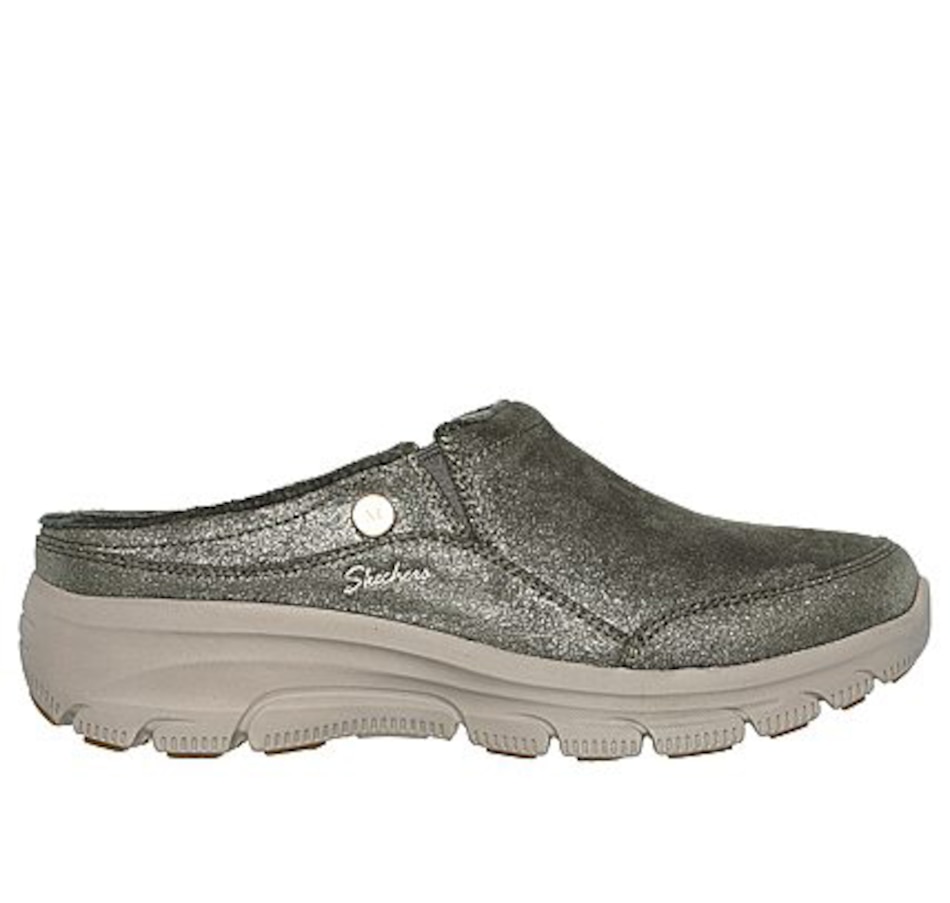 Celebrated lifestyle expert Martha Stewart delivers her one-of-a-kind touch to Skechers in this spirited collaboration. Start your garden walk-abouts in sparkling roomy comfort wearing the Martha Stewart x Skechers Relaxed Fit: Easy Going. This casual slipper clog features a vegan microsuede upper in a shimmery finish, with cozy lining, a shock-absorbing midsole, and a Skechers Air-Cooled Memory Foam insole.