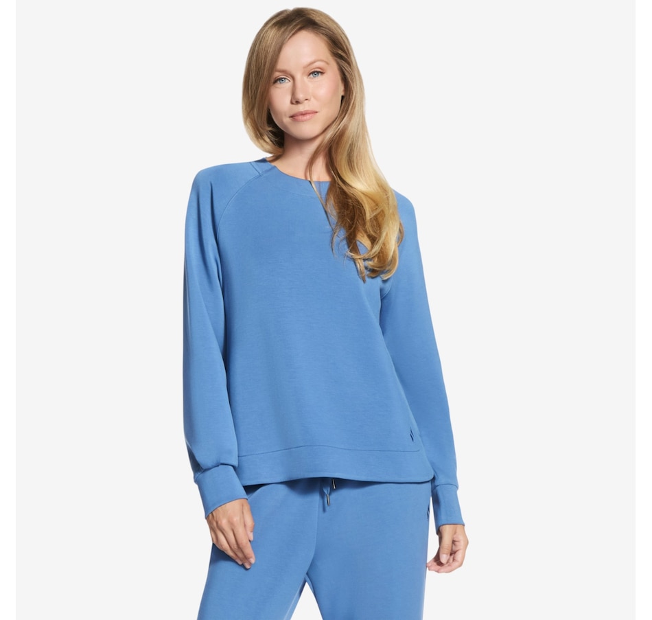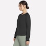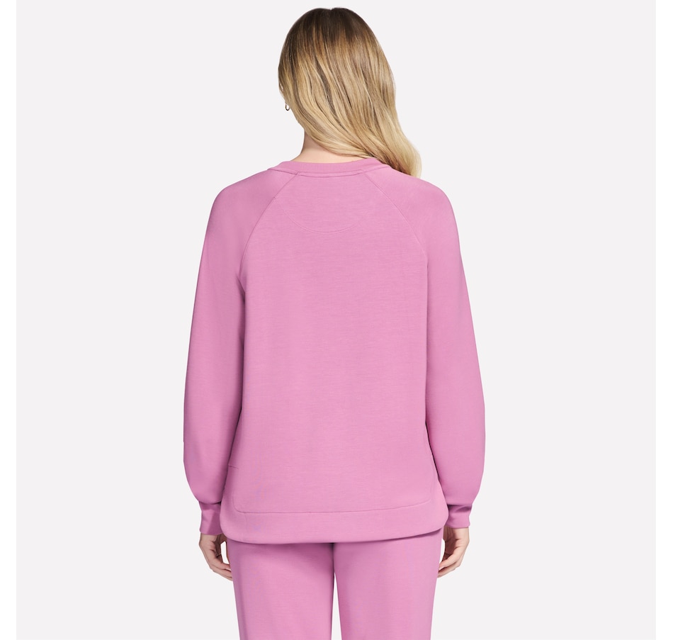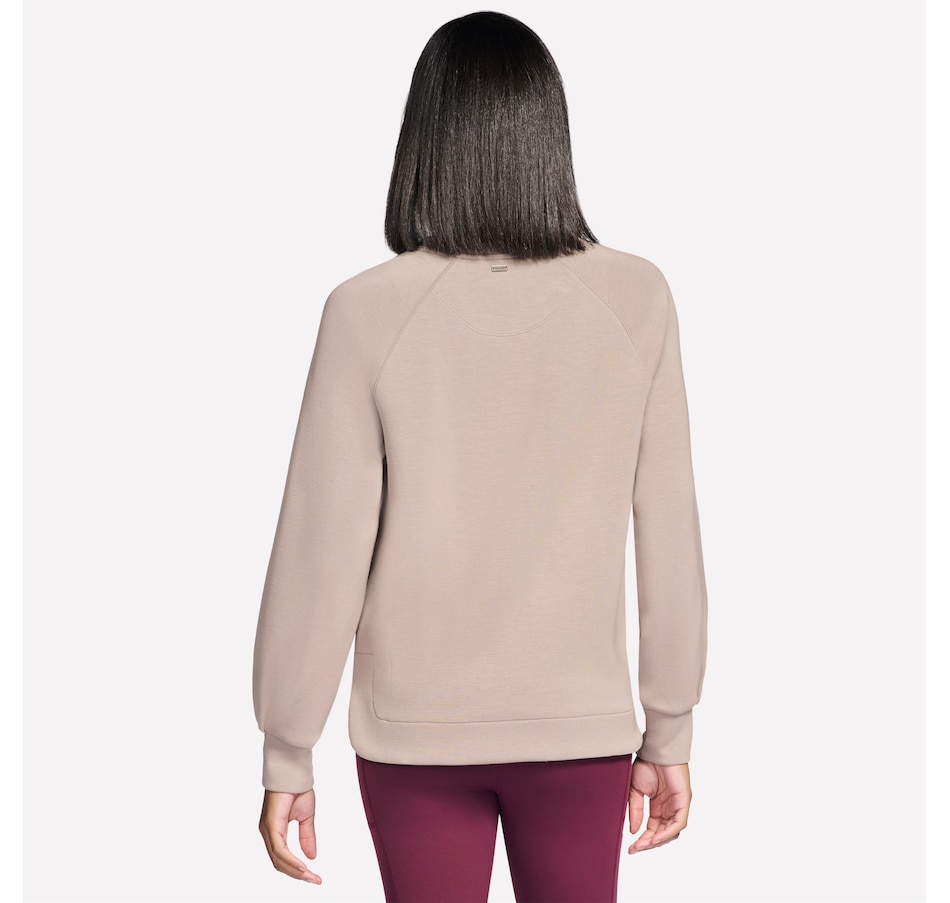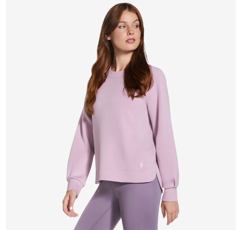 This long sleeve crewneck tee from Skechers features a self front neckband and ribbed back neck band. It is also designed with raglan shoulder seams, a high-low shirt hem, and single box pleat at cuffs.