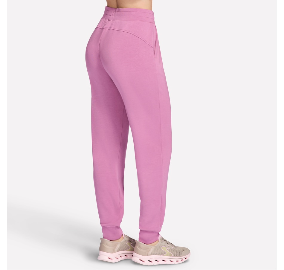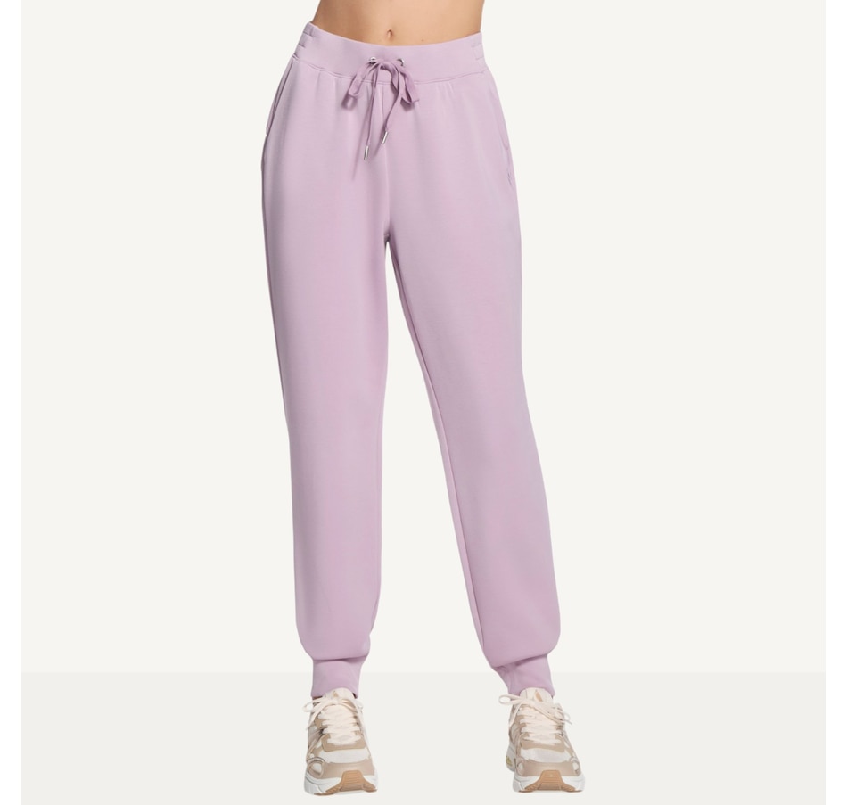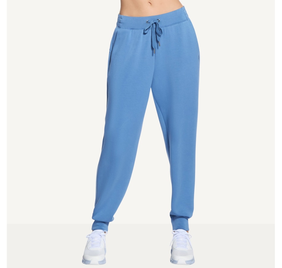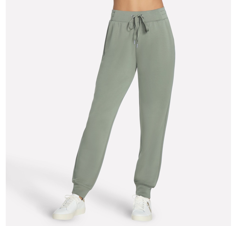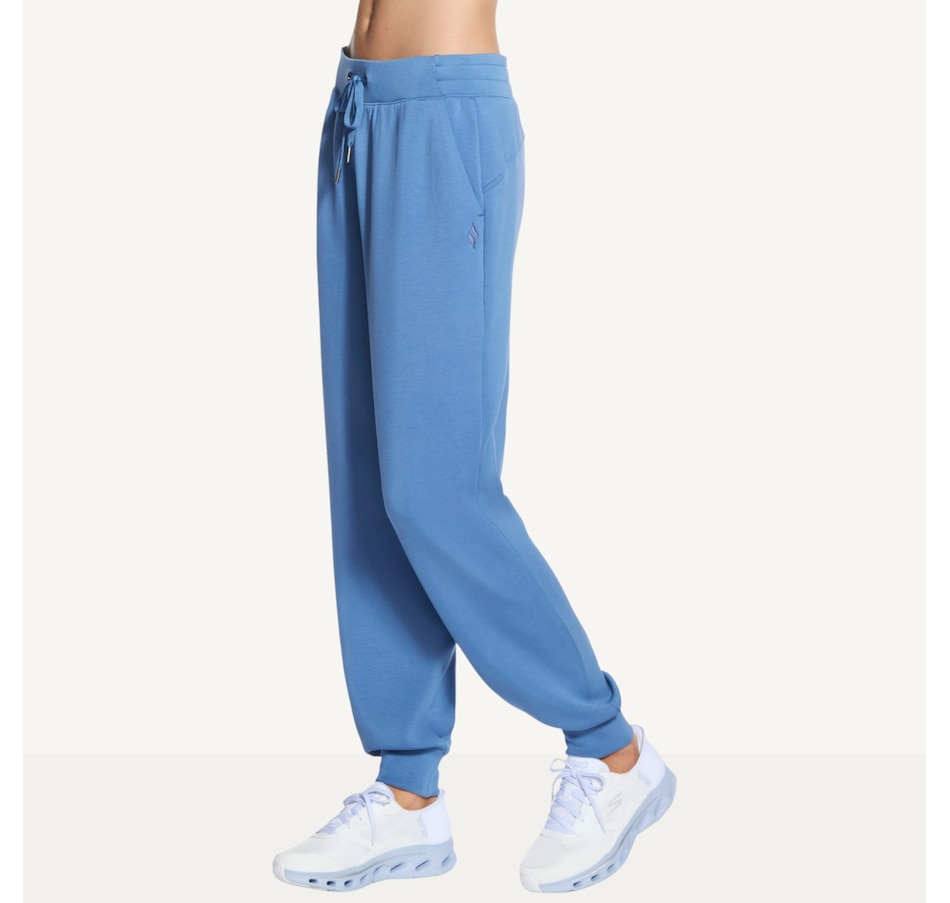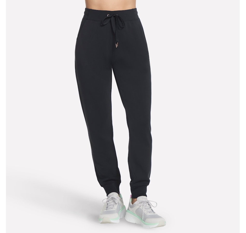 This full length tapered sweatpant from Skechers is designed with a self flat front waistband and leg openings, a waistband drawcord with metal aglets, and a back yoke.