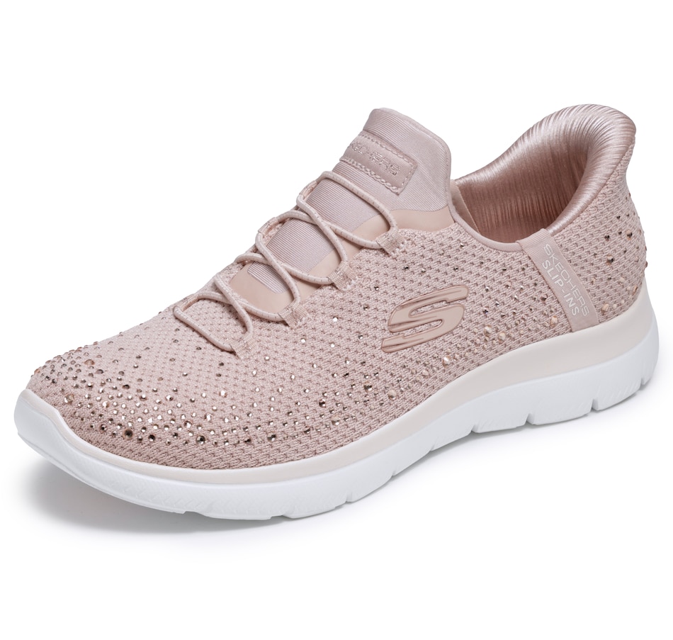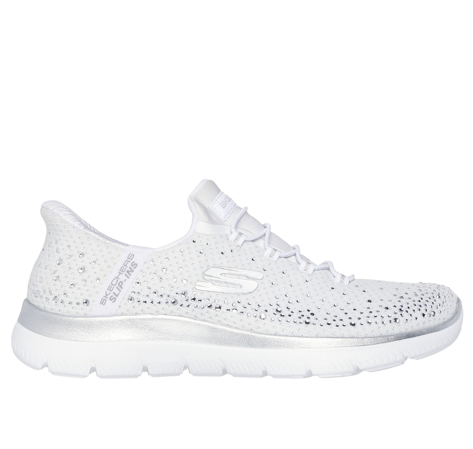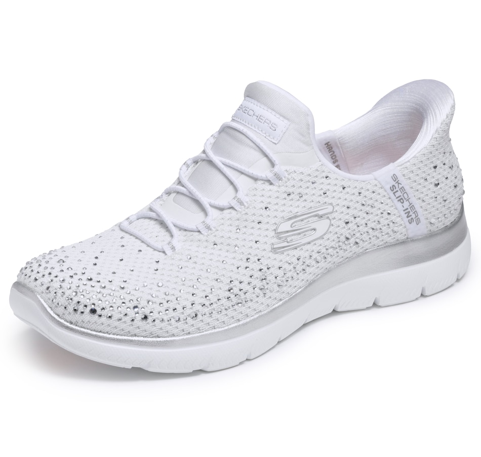 This fabulous slip-in features a rhinestone embellished mesh upper with stretch laces, and a lightweight flexible shock-absorbing midsole.