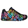 Show your creative and colourful style wearing Skechers x JGoldcrown Street Uno- Highlight Love sneakers. This lace-up fashion sneaker features a print of the artist's signature heart design, a synthetic durabuck and perforated trimmed upper, with a Skechers air-cooled memory foam insole and a visible Skech-Air airbag midsole.