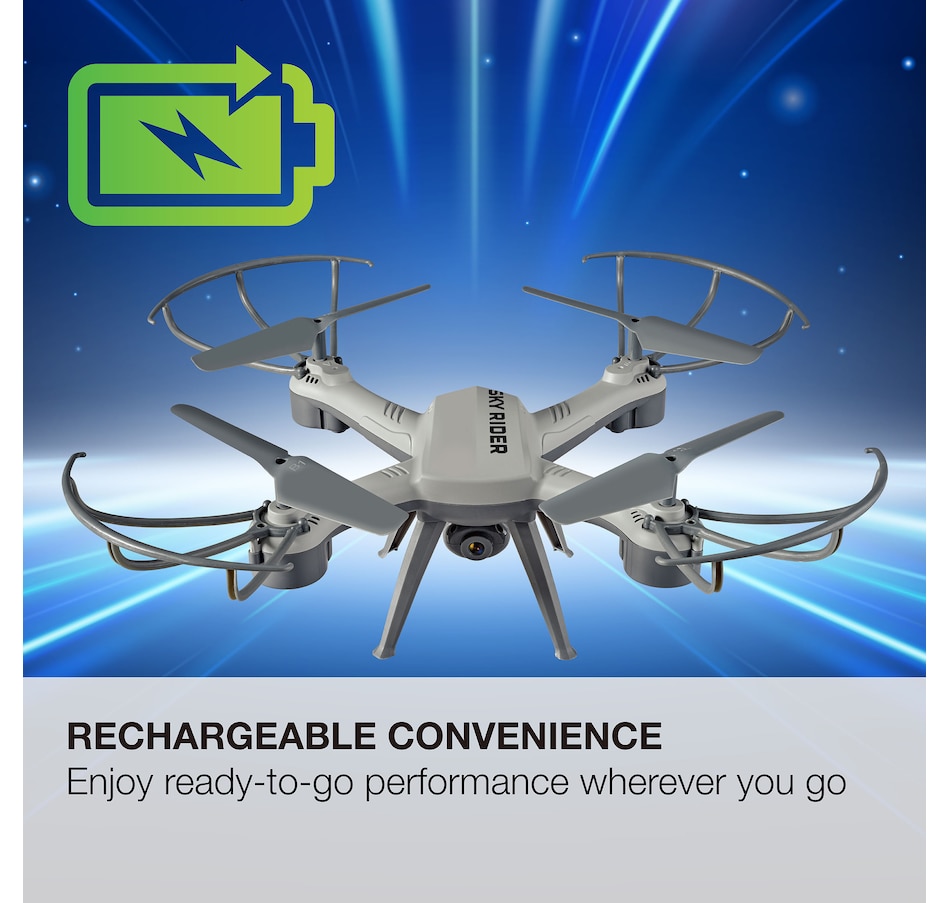 The Sky Rider drone lets you fly fast, weaving in and out of obstacles as you perform 360-degree flips and tricks with ease. And with its built-in Wi-Fi camera, you'll be able to capture every daring flight and share it with your friends!