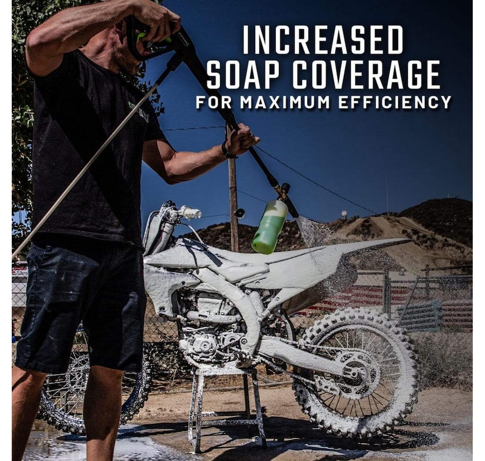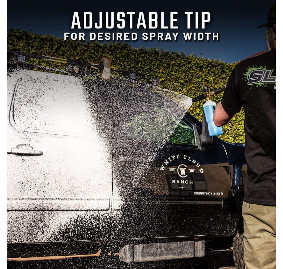 • Transforms liquid soap or car shampoo into thick suds and snow foam, providing superior cleaning power for vehicles and equipment.