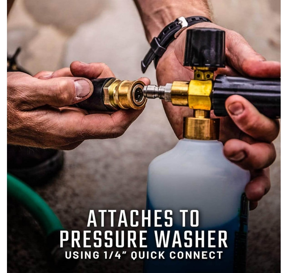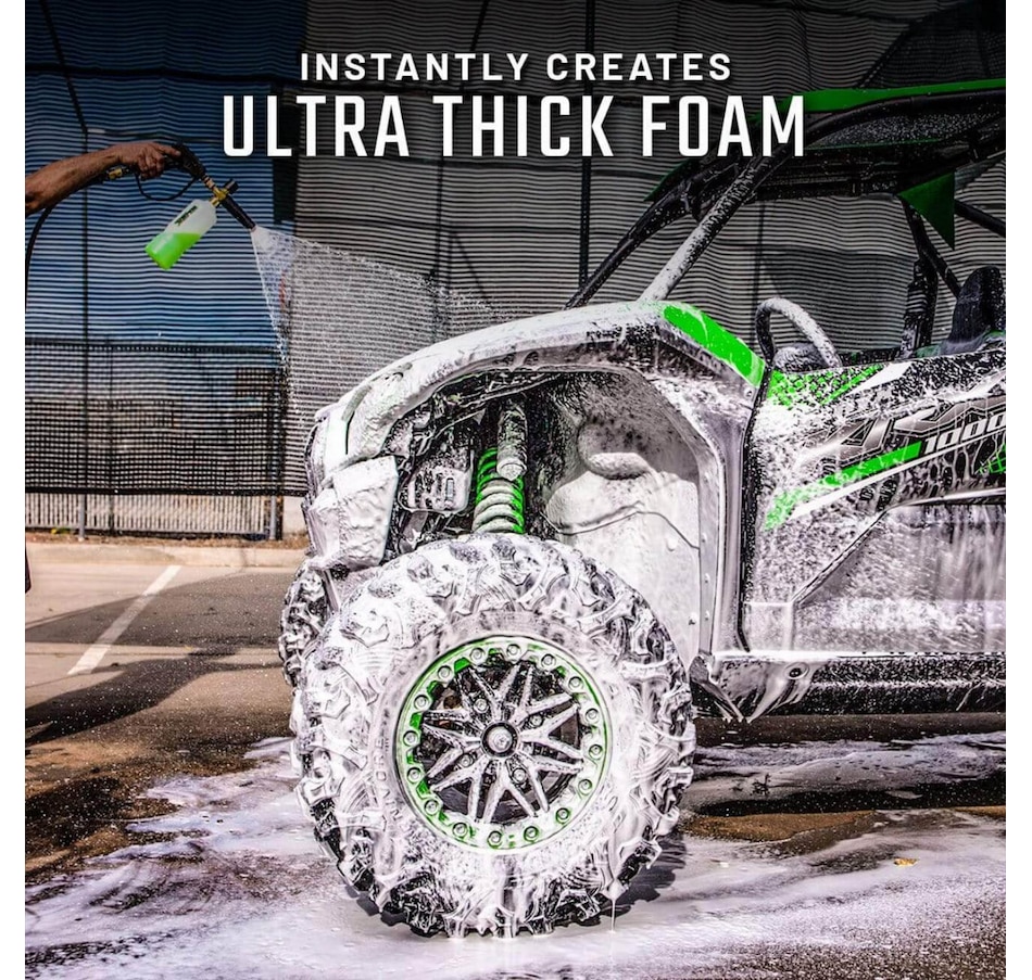 Transform your washing routine with this premium foam cannon. This high-performance tool effortlessly attaches to your pressure washer, delivering a thick layer of foamy suds that cling to the surface of cars, ATVs, UTVs, farm equipment and more. Elevate your washing experience today with this fabulous washer foam cannon!