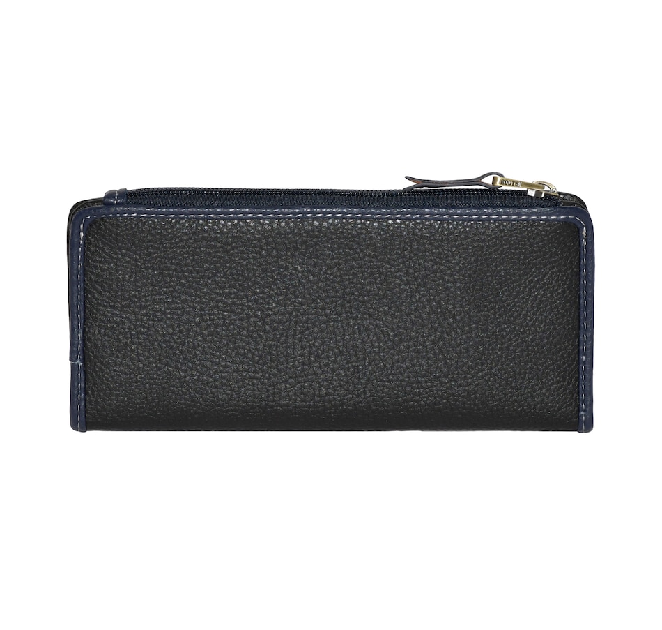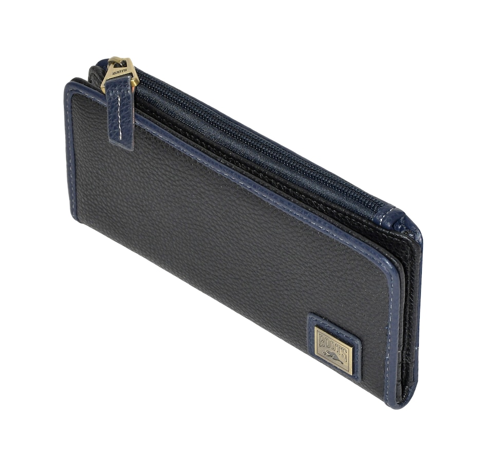 The Elk Bay Collection Slim Ladies Wallet with Top Zipper combines sleek design with practical functionality. Featuring 2 ID windows, 2 slot pockets, 6 credit card slots, and 1 zippered pocket, it provides plenty of space for your essentials. This stylish wallet is the perfect accessory for the modern woman on the go.
