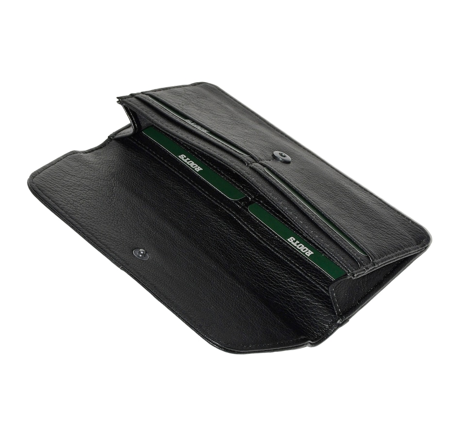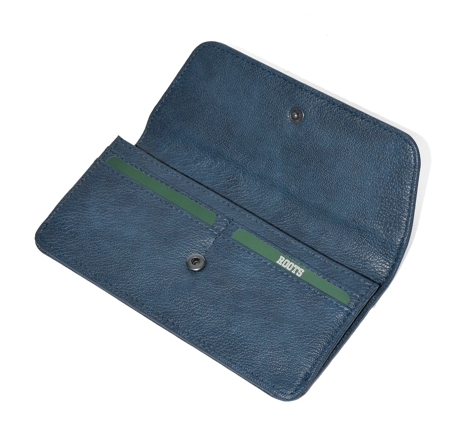 The Everglade Collection Slim Wallet by ROOTS offers a perfect blend of style and functionality. With 10 credit card slots, a zipper pocket, a gusset pocket, and a slot pocket, it provides ample space to organize your essentials. Crafted from durable materials, this sleek and stylish wallet is the ideal accessory for the modern woman on the go.