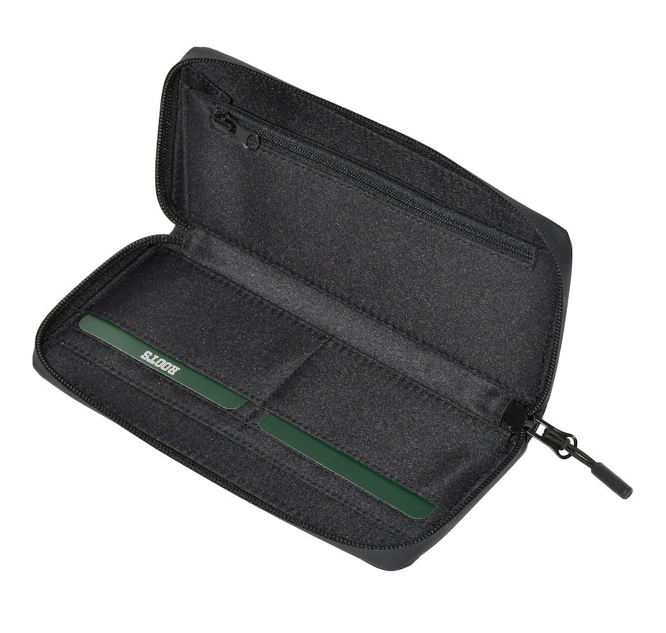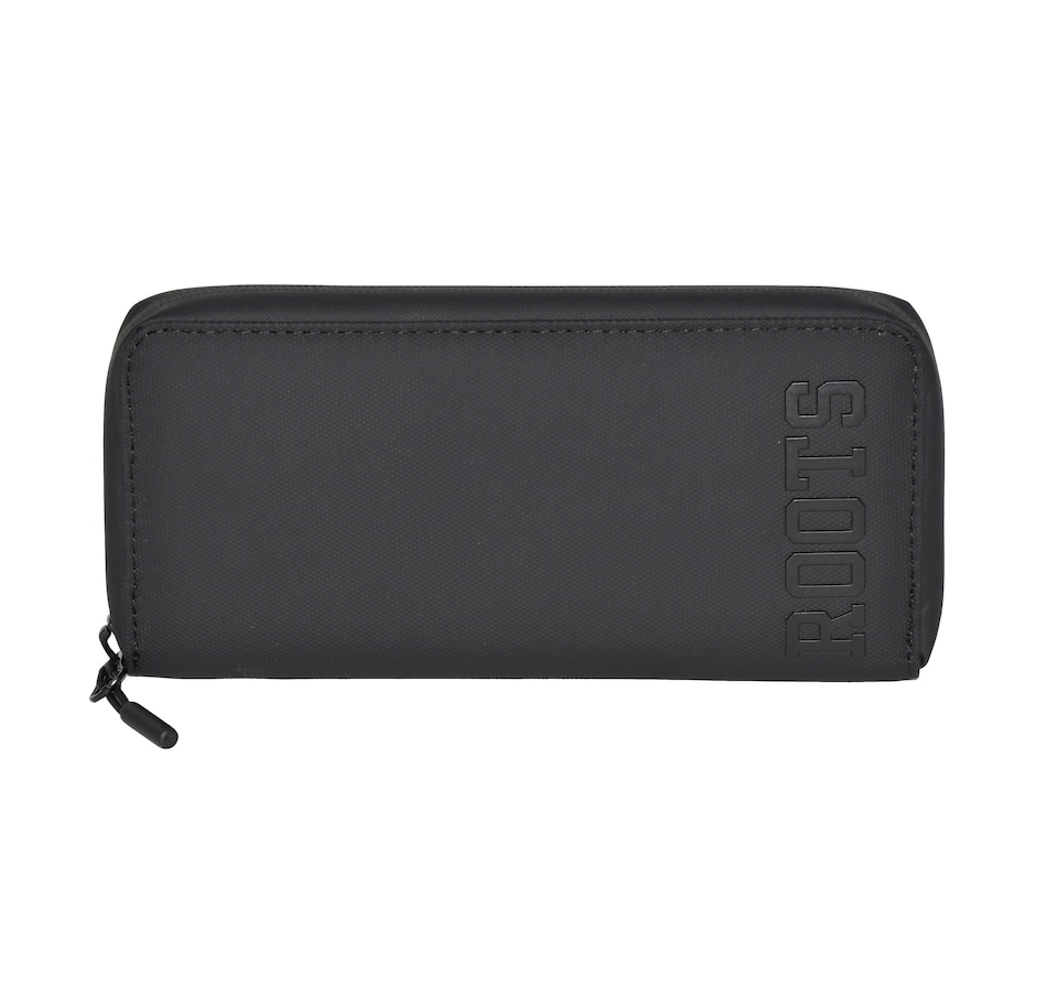 This ROOTS zip-around wallet is a classic design with multifunctional pockets that feature 4 credit card slots, 1 zipper pocket, 3 slot pockets, and 1 gusset pocket which provide great organization and function in a convenient size. The ROOTS logo detail on this cleverly designed wallet adds a nice finishing touch.