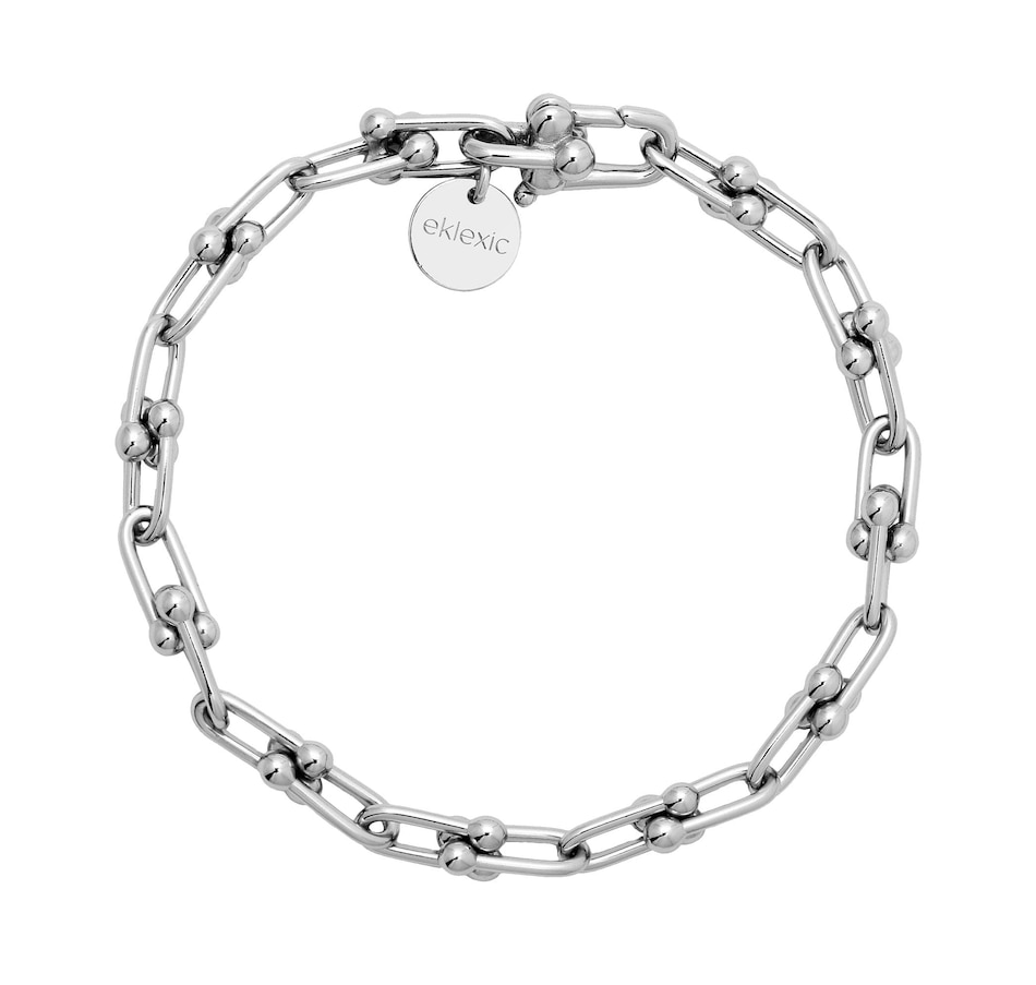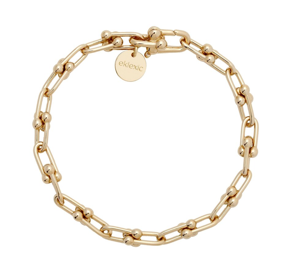 The Small Margaux Bracelet is made from our U link chain fastened with a with a custom U link clasp. The bracelet is a perfect stand alone piece, or pair it with any of our other bracelets to make more of an impact.Material: Recycled BrassPlating: 14K Gold or Rhodium-Silver.Chain has a clear protective coating to prevent from quick wear and tarnishing.U links measure 11mm Long x 5mm wide x 1.5mm thickClasp Measures: 20mmAvailable in the following Lengths: 6.5", 7", 7.5", 8", 8.5", 9"Our jewelry is always handmade from sustainable materials in the USA.