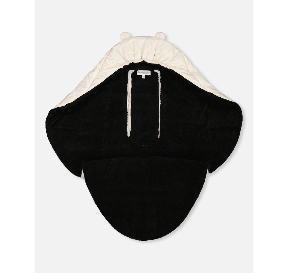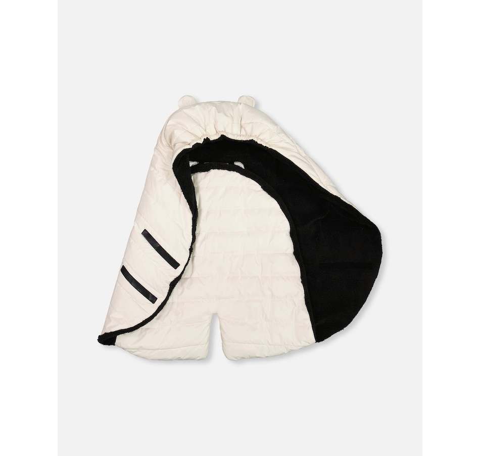 Baby will be oh-so-cozy and warm in our Snuggly Wrap Silver White For Car Seat and Stroller. Detailed with a water-resistant and weather-resistant coating, this adorable outer layer features a wrap silhouette with velcro flaps and openings to easily thread safety belt buckles and car seat and stroller harnesses. It's lined with soft plush fabric and includes adorable animal ears and a convenient little front pocket to hold a pacifier.