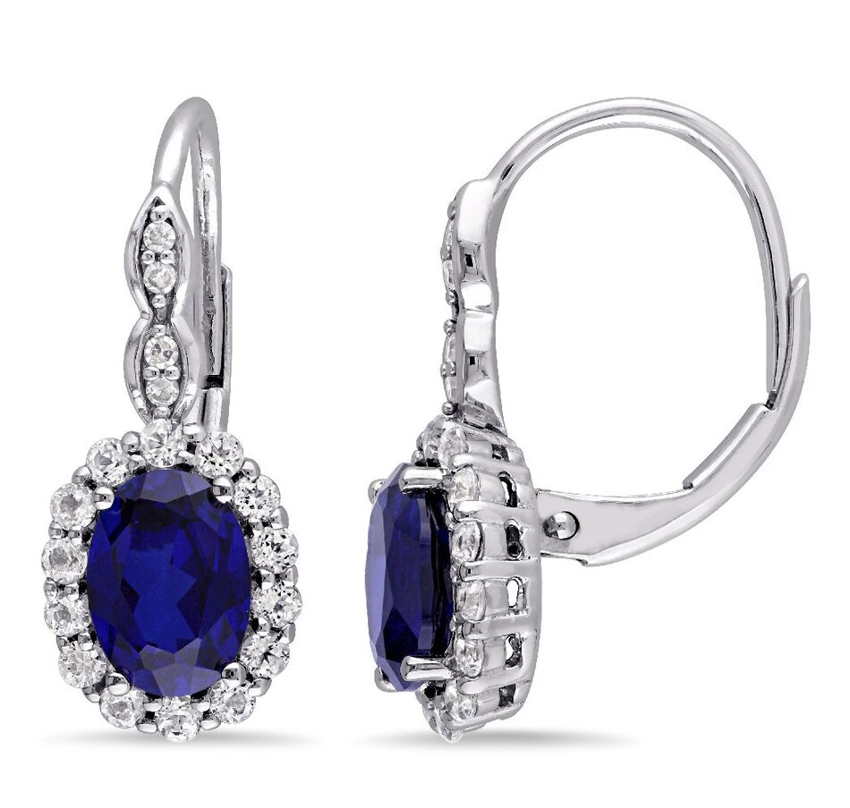 • Sofia B 14K White Gold Created Blue Sapphire, White Topaz & Diamond Accent Vintage Style Leverback Earrings