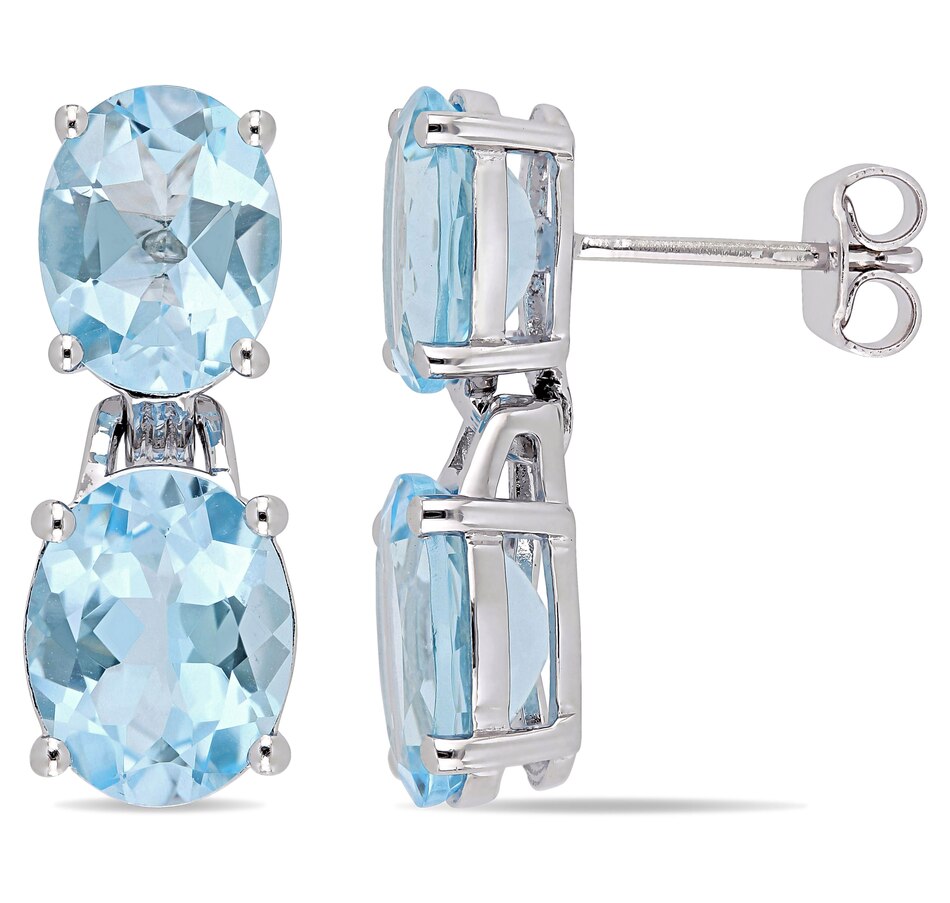 Silver Oval Sky Blue Topaz Dangle Earrings