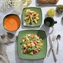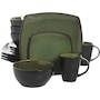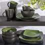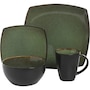 • Soho Lounge 16-Piece Dinnerware Set (green/black, square, reactive glaze, stoneware)