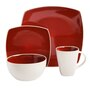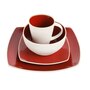 • Soho Lounge 16-Piece Dinnerware Set (red/white, square, two-tone, reactive glaze, stoneware)